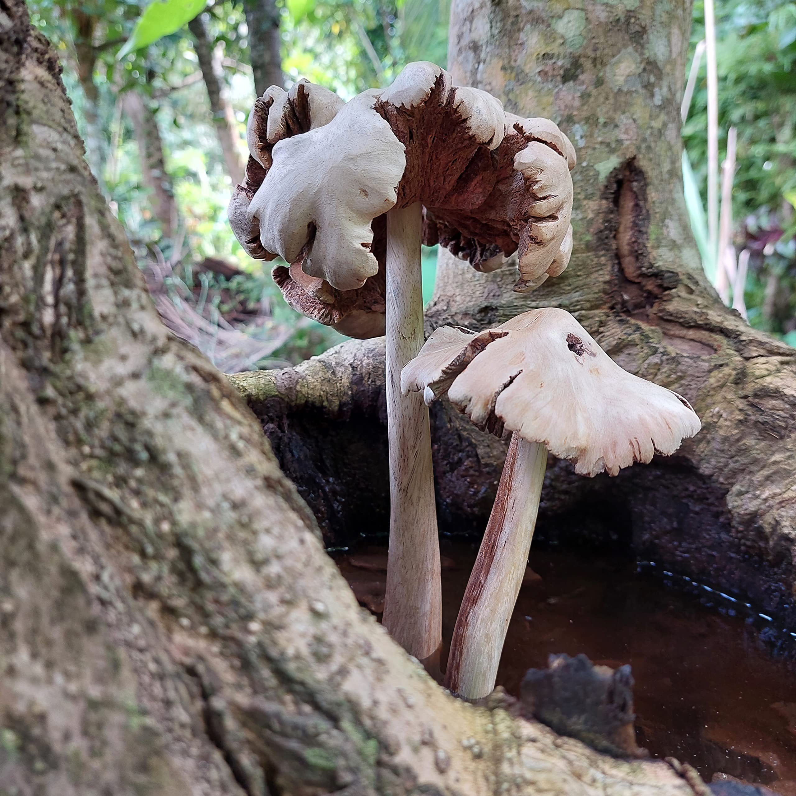 ART-CRAFT Garten Deko Pilze Holz - 2 Stück Handgeschnitzt