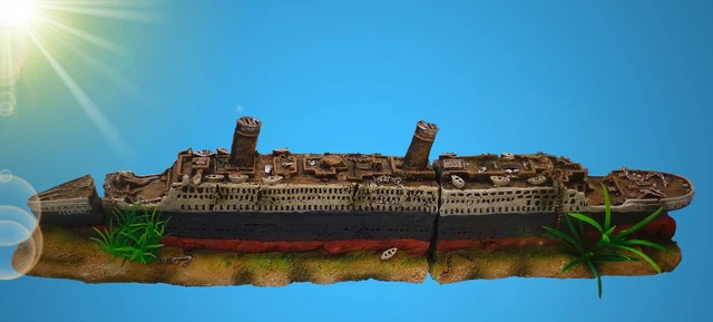 KIXZSAZ Titanic Schiffswrack Aquarium Deko - Realistisches Harz Ornament, 38cm Lang