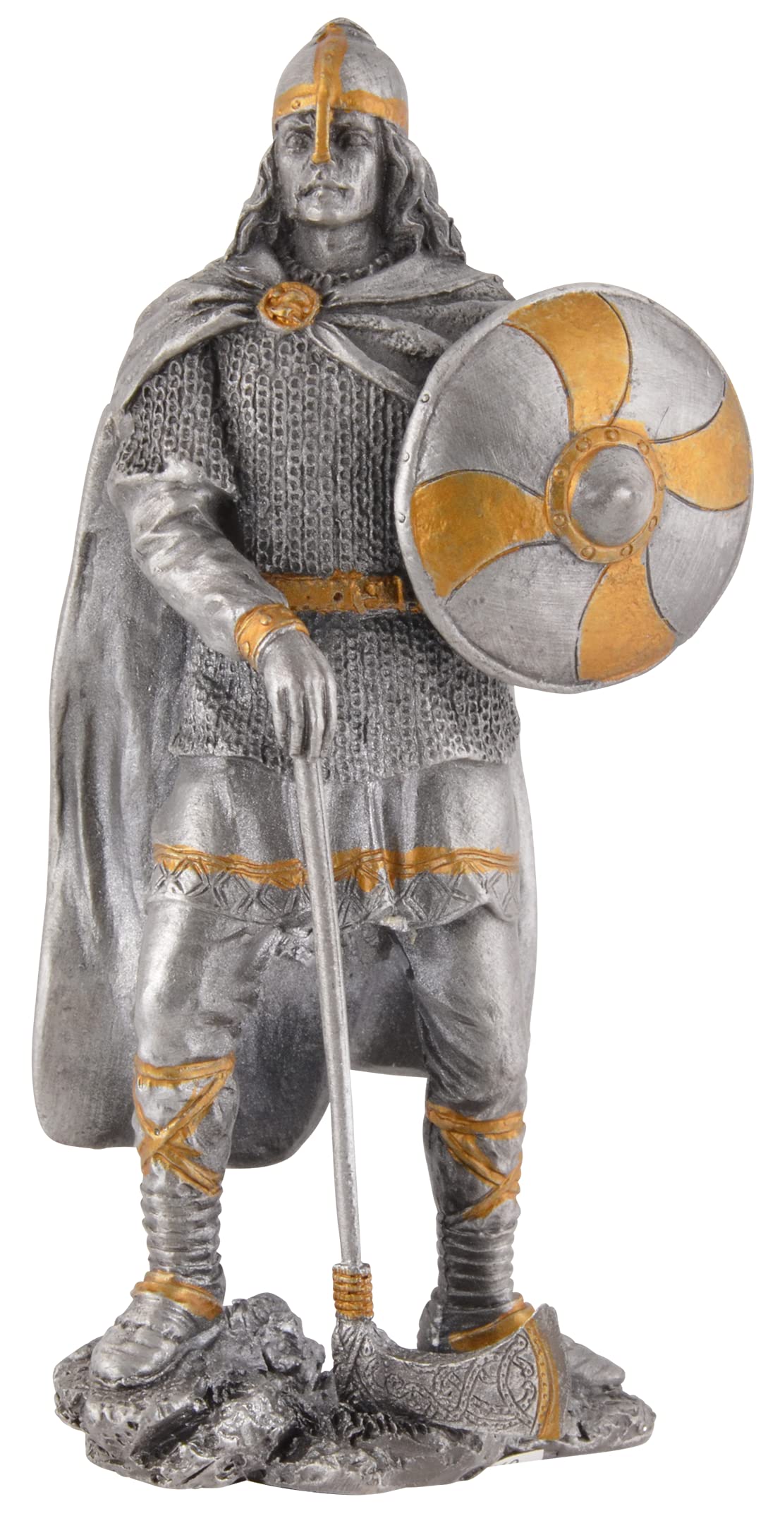 MystiCalls Ritter Figur Silber - Deko Ritter Mit Axt & Schild 21cm Höhe
