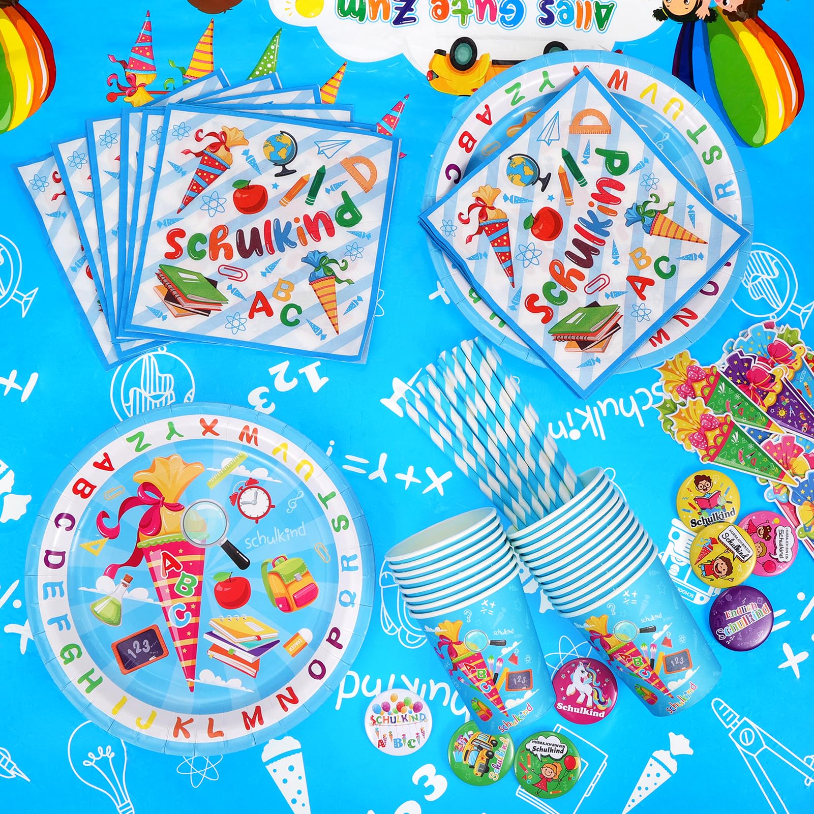 Einschulung Deko Set - Servietten, Teller & Strohhalme Für Schulanfang Party