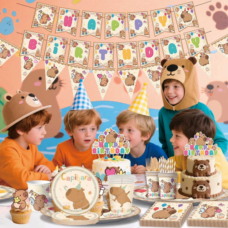 Lustige Capybara Party Dekoration Set - Mit Bechern, Tellern, Banner & Tischdecke