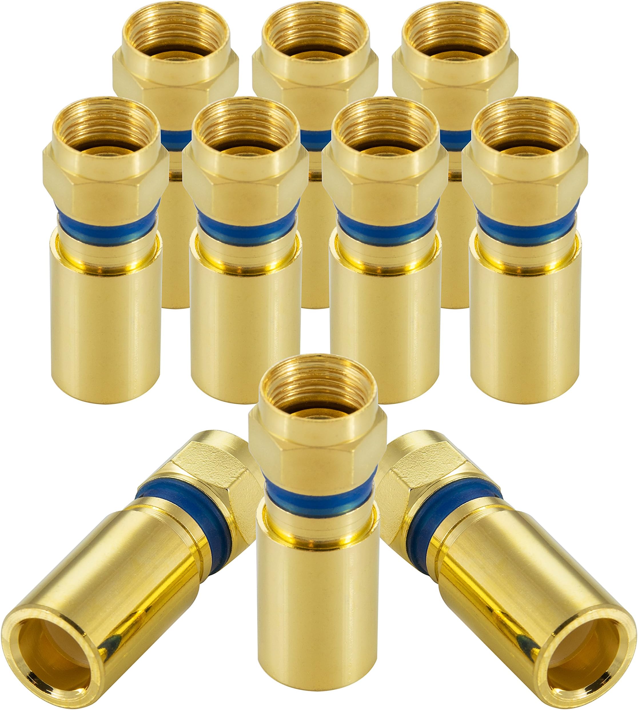 DeleyCON F-Kompressionsstecker 90° - 10 Stück SAT-Anschlüsse Für Koaxialkabel | 7,2mm Vergoldet
