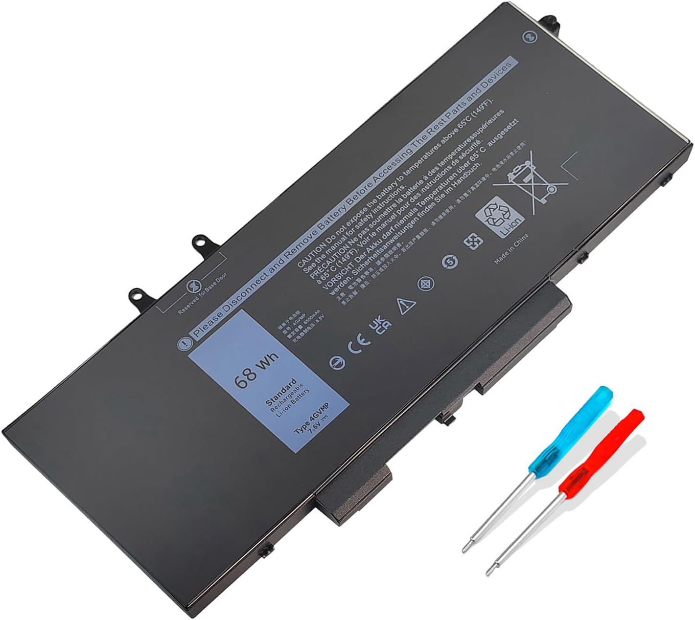 Verlängere die Lebensdauer deines Dell Laptops! Dieser hochwertige Ersatzakku passt perfekt für Dell Latitude 5400, 5500 Series und Precision 3540, 3550 Series. Mit 68Wh Kapazität und 7,6V Spannung für langanhaltende Leistung. Kompatibel mit den Akkutypen 4GVMP, 1V1XF, R8D7N und vielen weiteren. Li-Ion Technologie ohne Memory-Effekt. Zertifiziert mit Kurzschluss-, Überhitzungs- und Überspannungsschutz für maximale Sicherheit. Bis zu 500 Ladezyklen bei hoher Haltbarkeit. Jede Zelle wird vor dem Versand geprüft. Einfacher Einbau - mach deinen Laptop wieder mobil! Die tatsächliche Akkulaufzeit hängt von Nutzung und Einstellungen ab. Perfekt für unterwegs, im Home-Office oder für die Uni. Hol dir deine Unabhängigkeit zurück!
