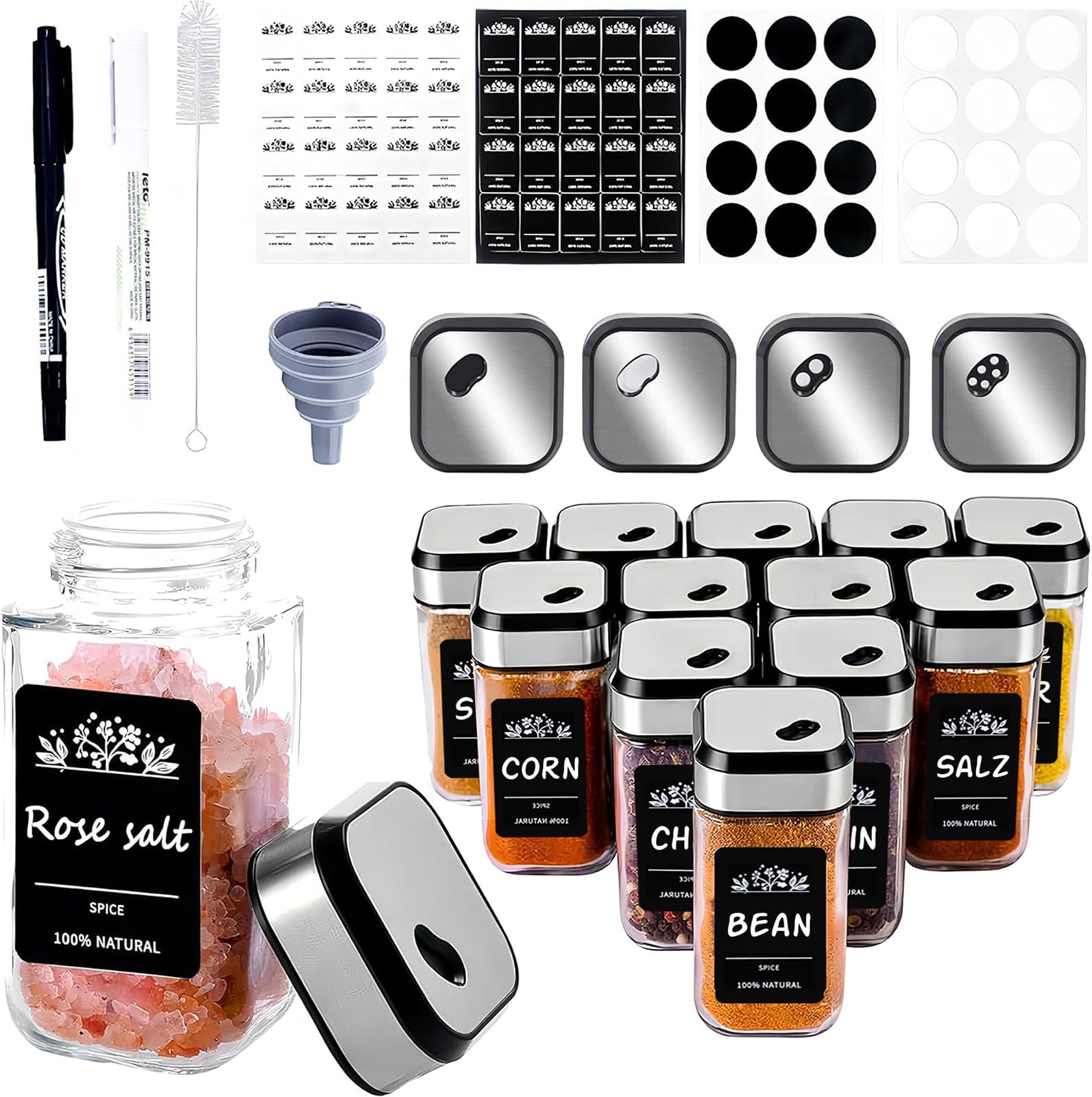 Deodak Gewürzgläser 24-teilig - Eckige Gewürzdosen 120ml Mit Sieb & Etiketten