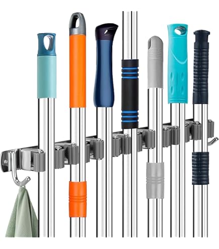 Endlich Ordnung in Garage, Keller oder Abstellraum! Diese robuste Besenhalterung von König Design bietet Platz für all deine Reinigungsgeräte. Mit 4 starken Haken und 3 praktischen Clips halten Besen, Mopps, Schaufeln und Schrubber sicher an der Wand. Die selbstklebende Montage macht die Installation zum Kinderspiel - einfach Schutzfolie abziehen und festdrücken. Aus stabilem Edelstahl gefertigt, trägt sie auch schwere Werkzeuge ohne Probleme. Das schlanke Design sieht ordentlich aus und spart wertvollen Platz. Perfekt für Privathaushalte, Werkstätten oder Büros. Nie wieder umgefallene Besen oder Chaos in der Ecke - mit dieser Halterung hast du alles immer griffbereit und übersichtlich!