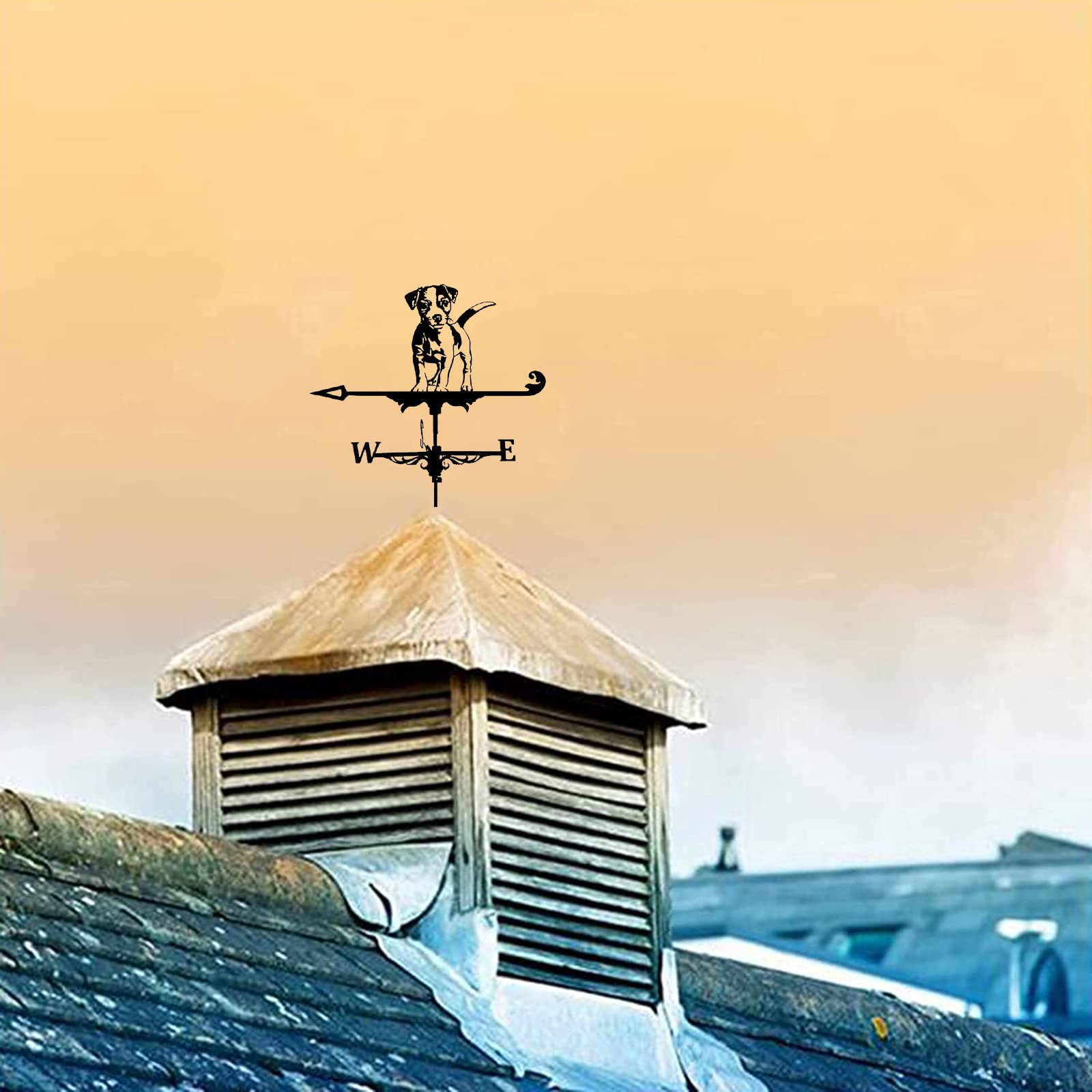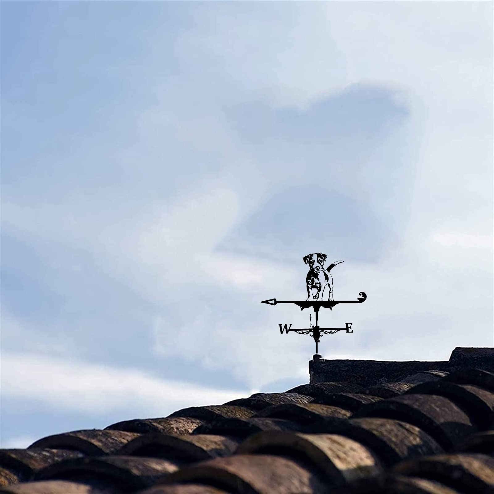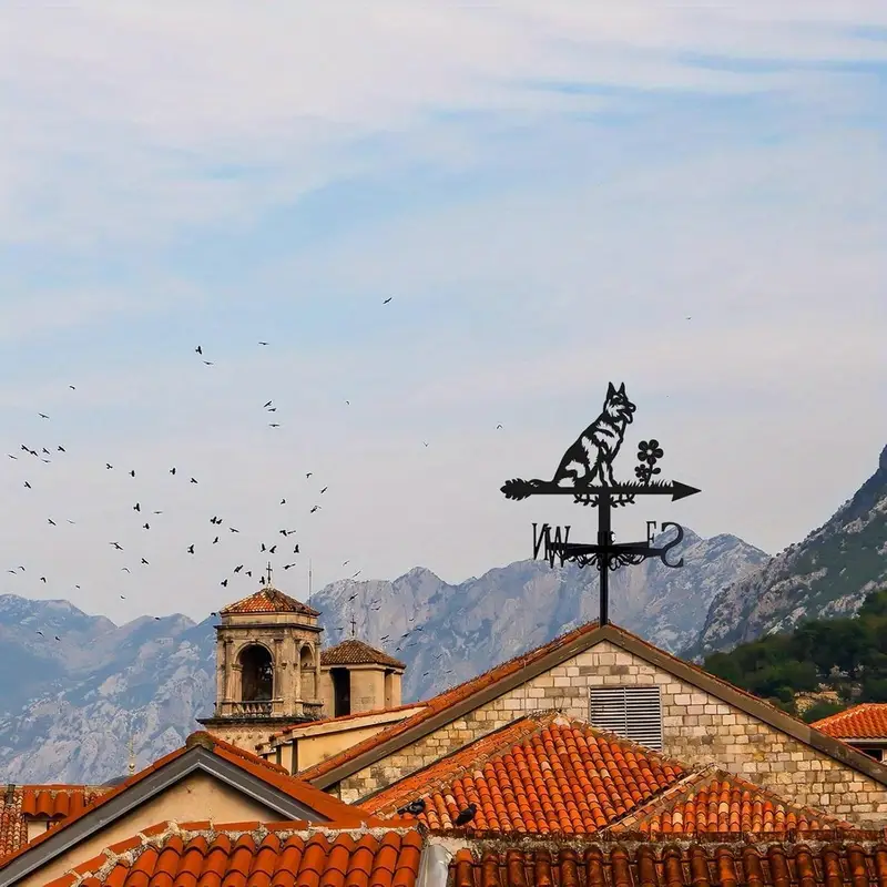 Diese süße Hunde-Wetterfahne bringt Charme an dein Haus! Aus robustem Edelstahl gefertigt, hält sie jedem Wetter stand. Mit 35x50 cm Größe ist sie gut sichtbar, aber nicht zu aufdringlich.\n\nNicht nur hübsch anzusehen - sie zeigt dir auch zuverlässig die Windrichtung an. Super praktisch für Gartenarbeit, aber auch fürs Militär oder in der Landwirtschaft.\n\nDie Montage ist super einfach: Einfach in den Boden stecken oder an der Decke befestigen. Professionell handgeschweißt und mit Sprühlack behandelt - rostfrei und langlebig.\n\nSieht toll aus auf Schuppen, Garagen, oder als Deko im Garten. Auch perfekt als Geschenk für Hausbesitzer. Ein nützliches Accessoire mit Charme!