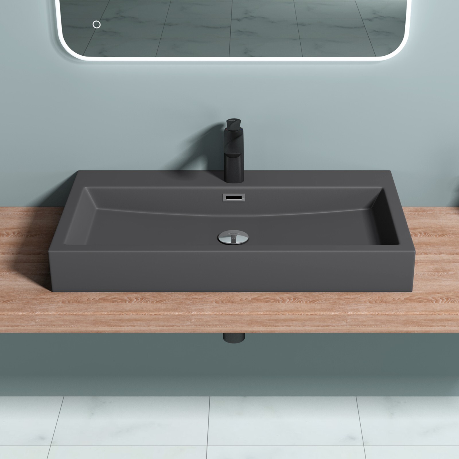 Dieser stylische Mineralguss-Waschtisch von StoneArt Design bringt modernes Flair in dein Badezimmer! Mit den Maßen 80x46x11 cm passt er perfekt in jede Ecke und spart wertvollen Platz. Das komplett durchgefärbte Material sorgt für echtes 'Stein-Feeling' und ist super pflegeleicht. In weiß matt sieht er einfach klasse aus und passt zu jedem Einrichtungsstil. Zur Wandmontage geeignet - schwebt quasi vor der Wand und macht das Putzen darunter zum Kinderspiel. Ohne Armaturen geliefert, sodass du deine Lieblingsmischbatterie frei wählen kannst. Perfekt für Gästetoilette, kleines Bad oder als Zweitwaschbecken. Ein echter Hingucker, der nicht nur gut aussieht, sondern auch praktisch ist!