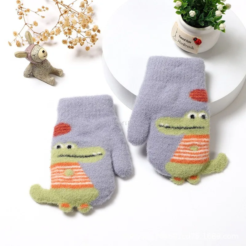 Kinder Fingerhandschuhe Winter - Cartoon Design Mit Halsband Gegen Verlust