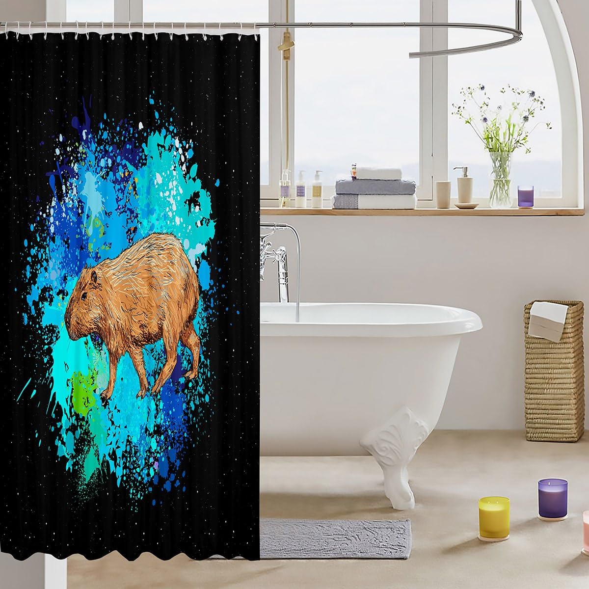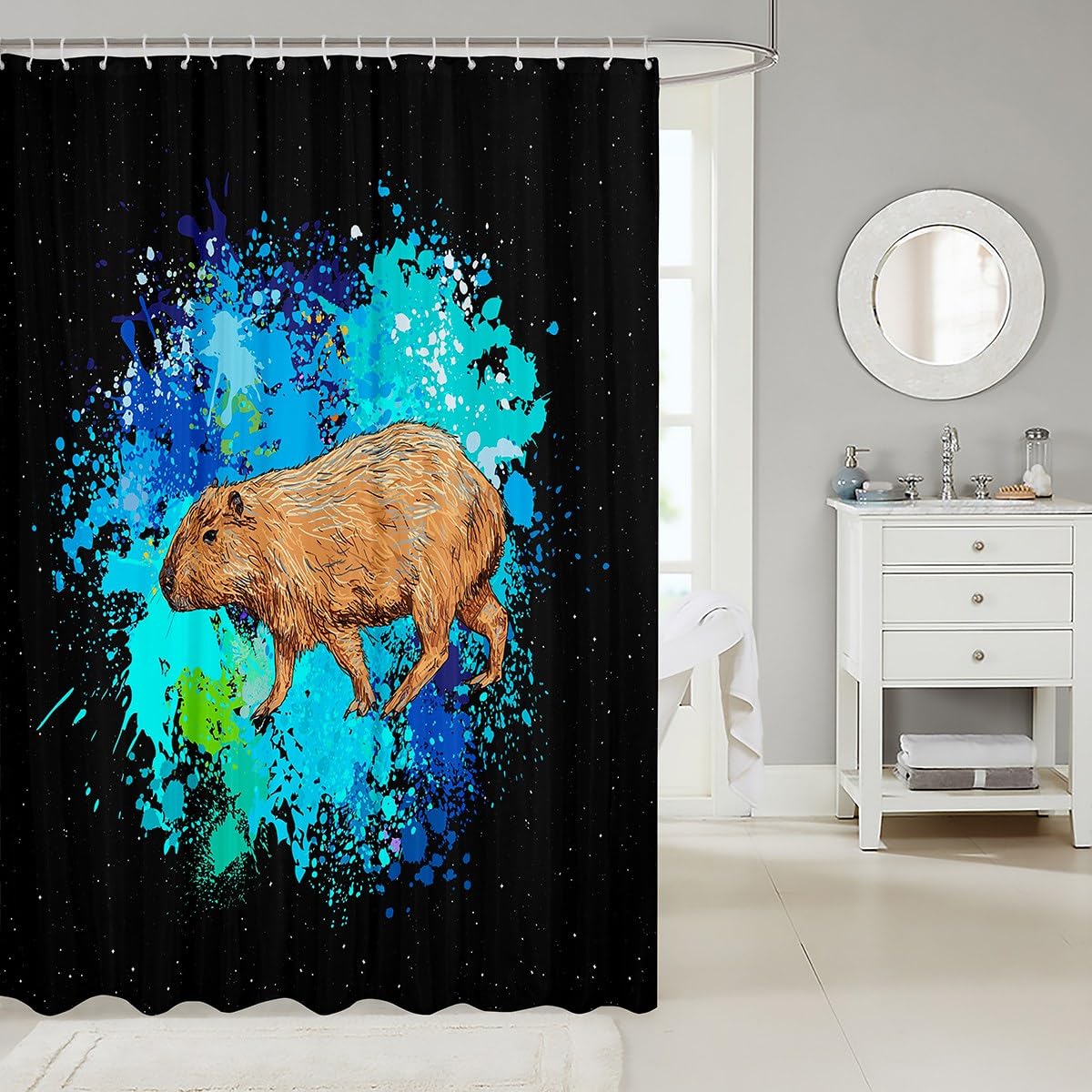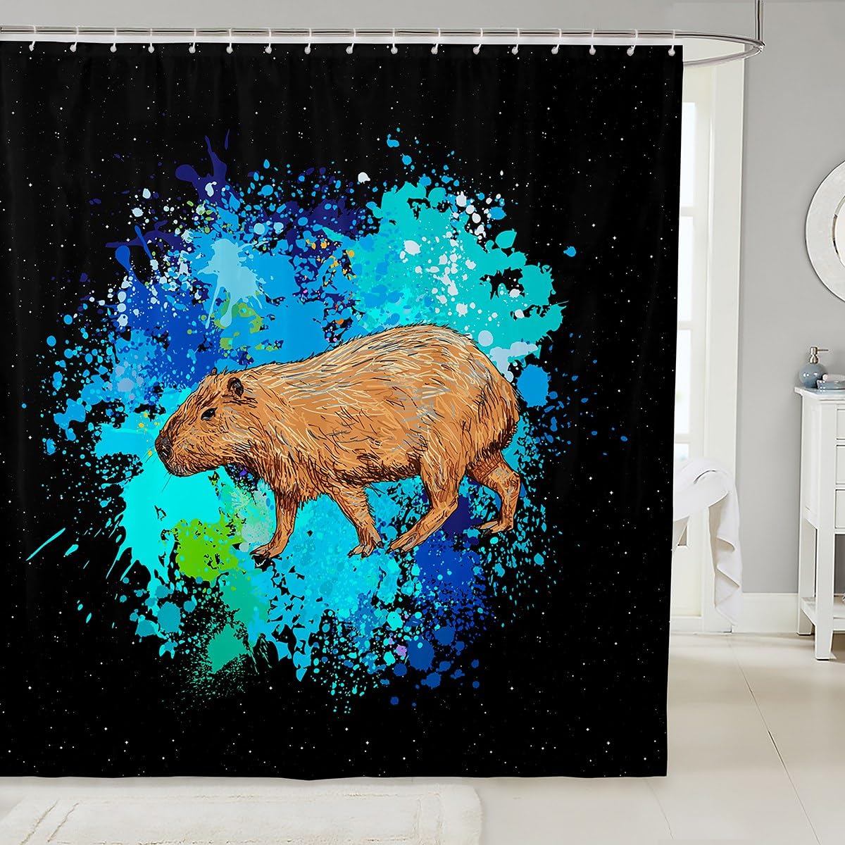 Manfei Capybara Duschvorhang - Lustiges Wasserschwein Design, Wasserdicht 183x198cm Mit 12 Haken