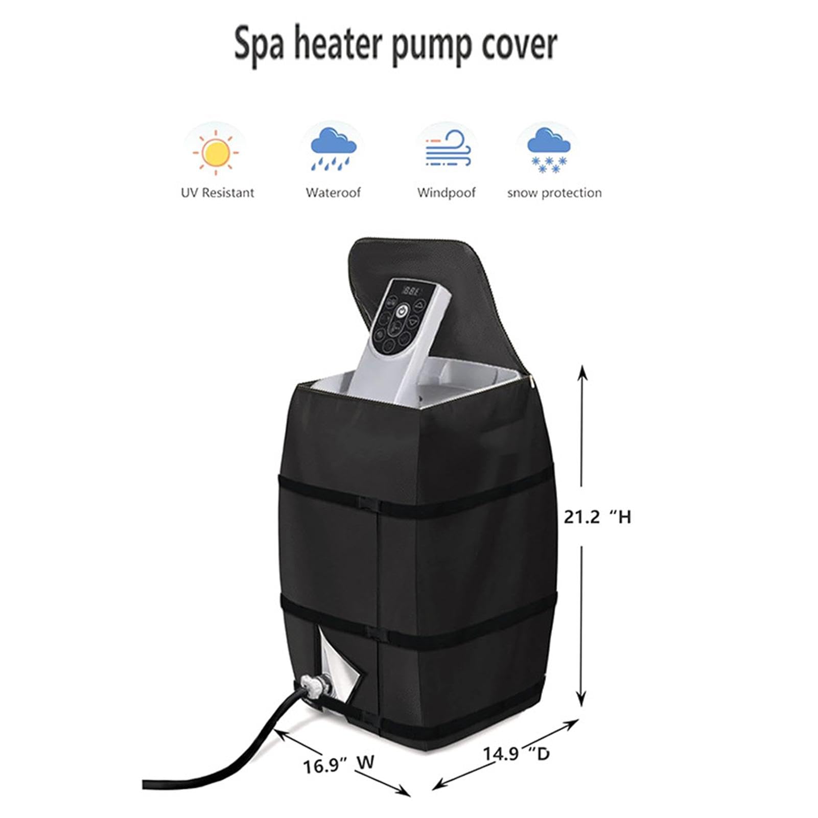Schütze deine Whirlpool-Pumpe vor Regen, Schnee und Staub! Diese praktische Abdeckung aus 420D silberbeschichtetem Stoff passt mit 43x38x54cm perfekt auf die meisten Heizungspumpen. Wasserdicht und UV-beständig - deine Pumpe bleibt immer trocken und sauber.