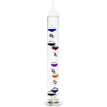 Das Galileo-Thermometer zeigt dir mit seinen bunten Kugeln die Raumtemperatur an - von 64°F bis 80°F in 4°-Schritten. Jede Kugel hat ein vergoldetes Temperatur-Label und schwebt je nach Temperatur auf unterschiedlicher Höhe. Einfach faszinierend zuzuschauen!