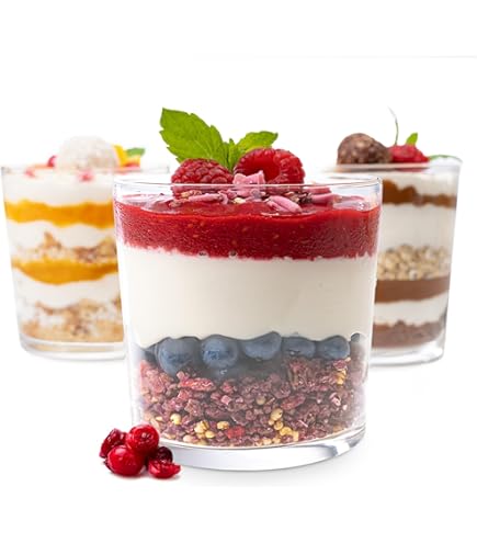 Hmm, lecker! Diese eleganten Dessertgläser von Glasmark KROSNO machen jede Nachspeise zum Highlight. Mit 270 ml Fassungsvermögen und dem feinen Stiel servierst du Eis, Pudding, Sorbets oder Fruchtcremes wie in einem Restaurant. Der isolierende Stiel schützt deine Hände vor Wärmeübertragung - egal ob heiße Schokoladensoufflés oder eiskalte Parfaits. Aus robustem, klarem Glas gefertigt sind sie spülmaschinenfest und super pflegeleicht. Das 6er-Set ist perfekt für Dinnerpartys, Familienfeiern oder einfach für den gemütlichen Abend zuhause. Aber nicht nur für Süßes - auch herzhafte Vorspeisen oder Fruchtcocktails kommen in diesen Gläsern super zur Geltung. Die Gläser stapeln sich platzsparend und sind immer griffbereit. Deine Gäste werden begeistert sein! So verwandelst du jede Mahlzeit in ein besonderes Erlebnis. Einfach auspacken, befüllen und genießen - mehr Braucht's nicht für den perfekten Dessert-Moment!
