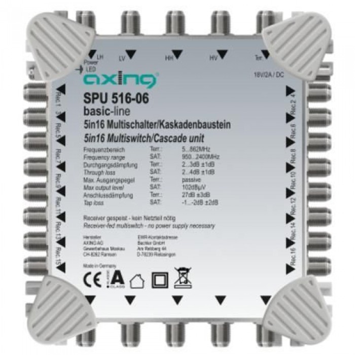 Axing SPU 21-01 DiSEqC Umschalter - Universal Satelliten Switch 2 In 1 - Toneburst Für LNBs