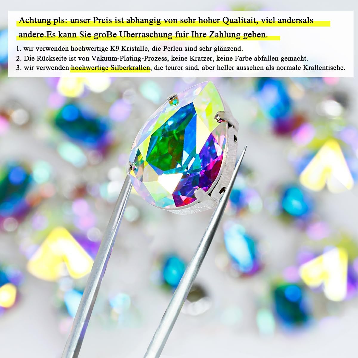 Der AB-Effekt (Aurora Borealis) lässt die Steine in allen Regenbogenfarben schimmern - einfach magisch! Sie funkeln und glitzern, egal aus welchem Winkel du sie betrachtest!