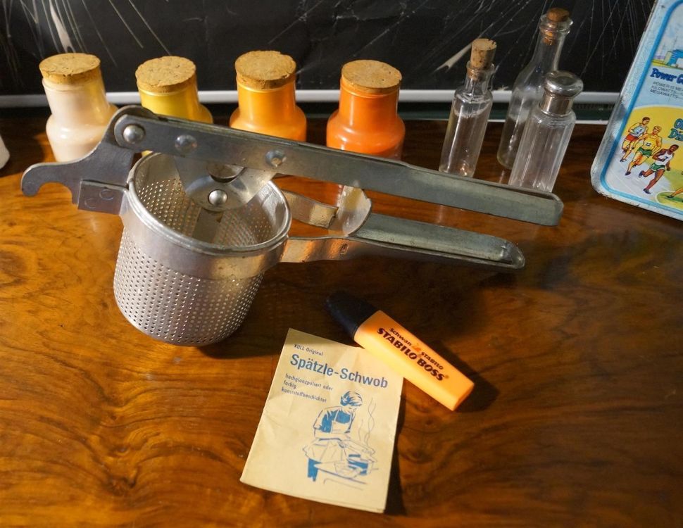 Endlich ne richtig gute Kartoffelpresse, die nicht nach zwei Mal Benutzen kaputt geht! Aus robustem Edelstahl gemacht - die verbeult sich nicht, verbiegt sich nicht und bricht erst recht nicht. Super praktisch: Sie kommt mit drei austauschbaren Sieben, damit du entscheiden kannst, wie fein oder grob dein Püree, Spätzle oder Gemüse werden soll. \\n\\nDer Drucktank ist extra groß - da passt ne ganze Menge rein, sodass du nicht ständig nachfüllen musst. Perfekt wenn mal wieder Besuch kommt oder du für die Familie kochst. Und nach dem Kochen? Einfach auseinandernehmen und ab in die Spülmaschine - oder kurz unter fließendem Wasser abspülen. \\n\\nEgal ob du Hobbykoch bist oder professionell in Restaurant oder Hotel arbeitest - mit dieser Presse machst du immer ne gute Figur. Für cremigen Kartoffelbrei, feine Spätzle, fruchtige Säfte oder Gemüsepürees. Einfach reinschütten, drücken - und schon hast du perfekte Ergebnisse!