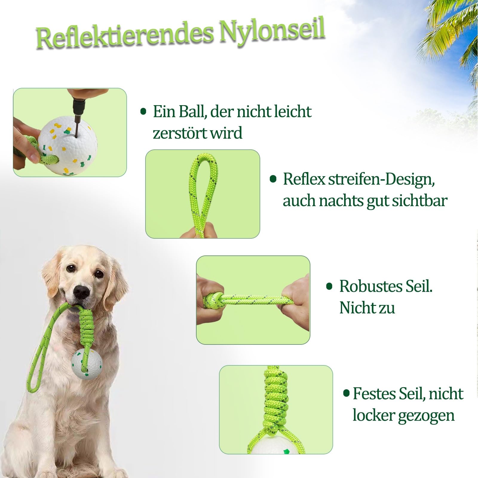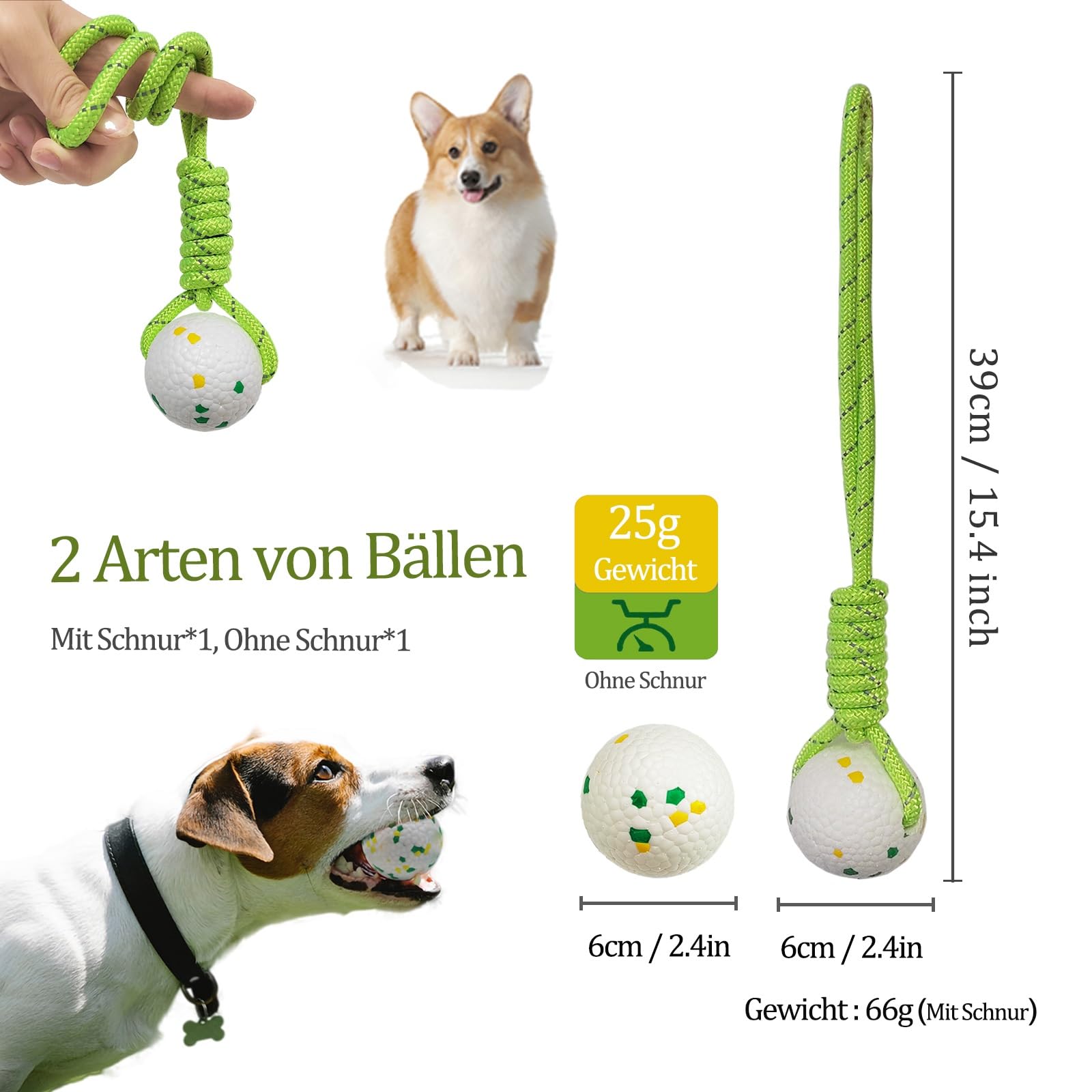 Was ich besonders cool finde: Die Bälle sind absolut schadstofffrei und geruchlos - total sicher also für eure Lieblinge. Im Set sind zwei verschiedene Varianten dabei: Ein Ball mit praktischem Seil, super zum Werfen ohne Sabberhände, und ein normaler Ball mit super Sprungeigenschaften für drinnen.
