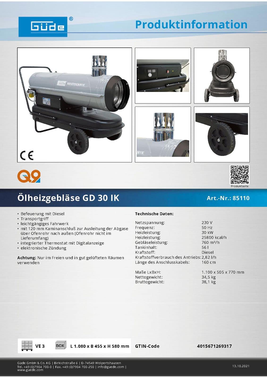 Ölheizgebläse GD 30 IK - 30kW Diesel Heizer Mit Thermostat & 760m³/h Luftleistung