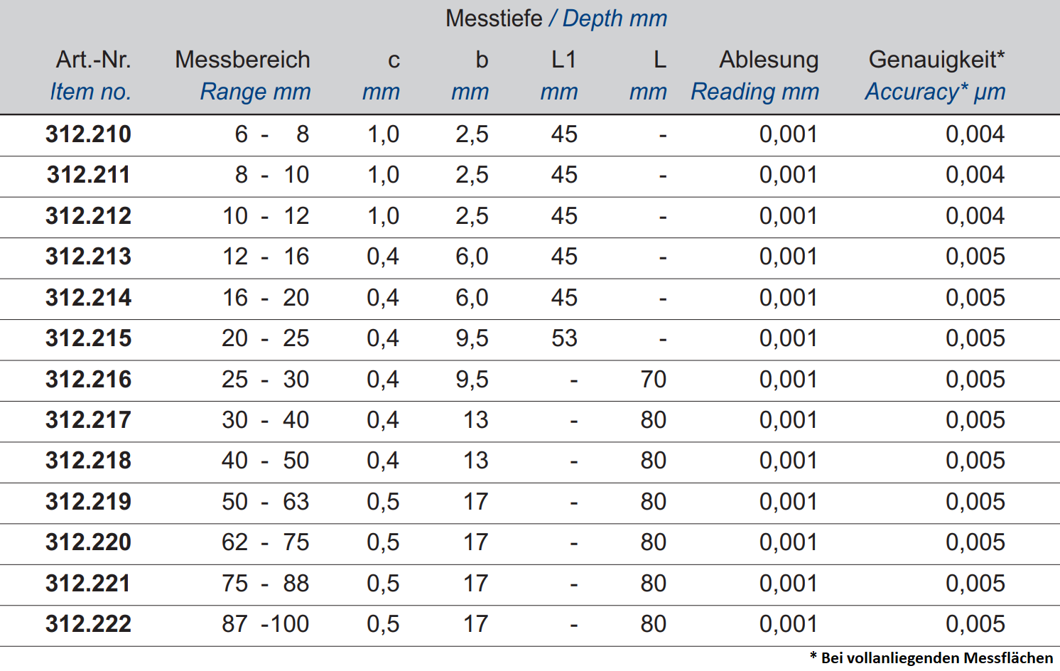 Hey, für alle Heimwerker und Profis - diese digitale Innen-Messschraube von CNC QUALITÄT ist ein absolutes Präzisionswerkzeug! Misst super genau im Bereich von 16-20mm und ist perfekt für Sacklochbohrungen. Die Digitalanzeige zeigt dir 0,001mm genau an - einfach ON/OFF, HOLD oder mm/inch umschalten. Die Skala ist mattverchromt, also blendfrei und gut ablesbar. Mit den speziellen Maßen (c: 0,4mm, b: 6,0mm, L1: 45mm) kommst du auch in enge Stellen rein. Ob in der Werkstatt, für Modellbau oder Metallarbeiten - dieses Teil liefert dir zuverlässige Messergebnisse. Einfach in die Bohrung führen, ablesen und du weißt genau was Sache ist. So vermeidest du Messfehler und arbeitest professionell. Für jeden der's genau wissen will - ob beim Hobby oder im Job - dieses Innenmikrometer ist ein echter Game-Changer!