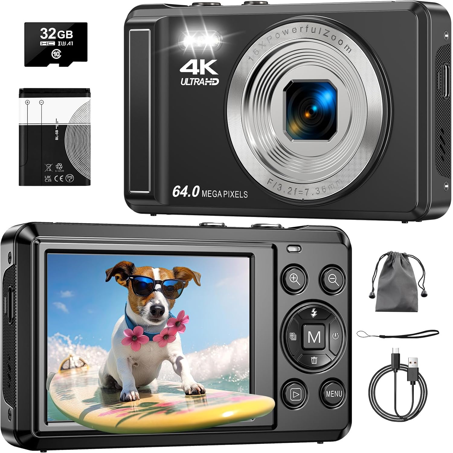 4K Digitalkamera 64MP Mit 32GB Karte - Kompaktkamera Mit 16x Zoom