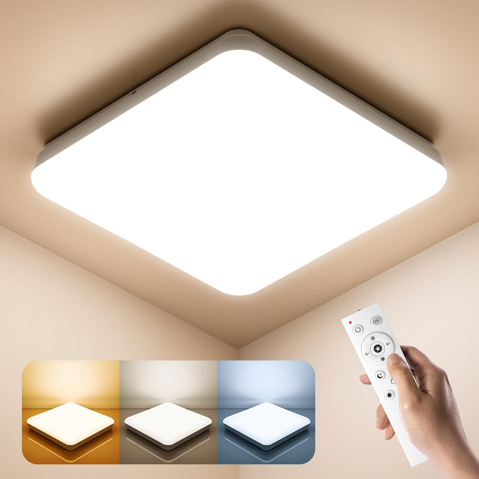 Perfektes Licht für jede Stimmung! Diese runde LED Deckenleuchte in Weiß (33cm) bietet dir totale Kontrolle über deine Beleuchtung. Mit 24W und 2400LM erleuchtest du jeden Raum perfekt. Das Besondere: Ein warmes 2000K Nachtlicht für gemütliche Abende und einen 30-Minuten Timer für entspanntes Einschlafen. Per Fernbedienung stellst du die Farbtemperatur von 3000K (warmweiß) bis 6500K (tageslichtweiß) ein und dimmst die Helligkeit von 10% bis 100%. Die ultradünne Bauweise sieht modern aus und passt in Schlafzimmer, Wohnzimmer, Kinderzimmer oder Flur. Mit hochwertigen SMD2835 LED-Chips für flimmerfreies Licht und lange Lebensdauer. Die Speicherfunktion merkt sich deine letzten Einstellungen. Schaffe die perfekte Atmosphäre für jeden Moment - ob zum Arbeiten, Entspannen oder Schlafen!