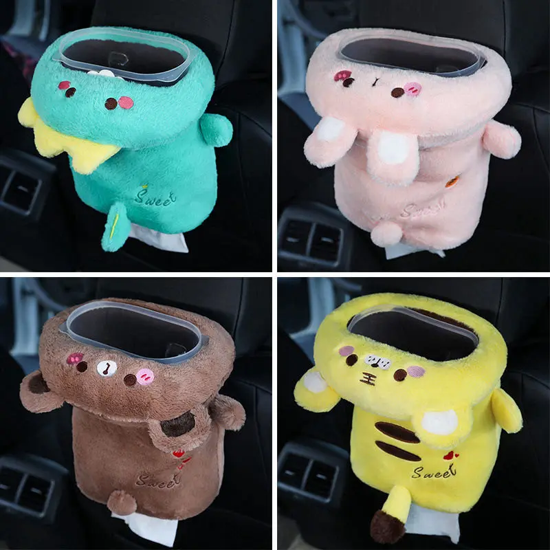 DimyFew Auto Taschentuchbox & Mülleimer Set - Lustiger Plüsch-Spender Für Armlehne (Wasserschwein)
