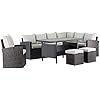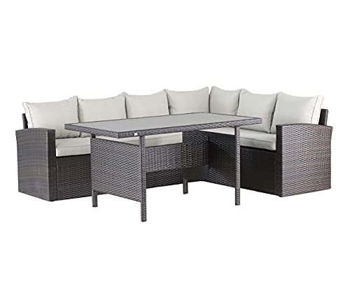 Mandalika Garden Dining Lounge Set Milos XL - Poly Rattan, Braun, Mit Sessel & 2 Hockern, Spiegelverkehrbar