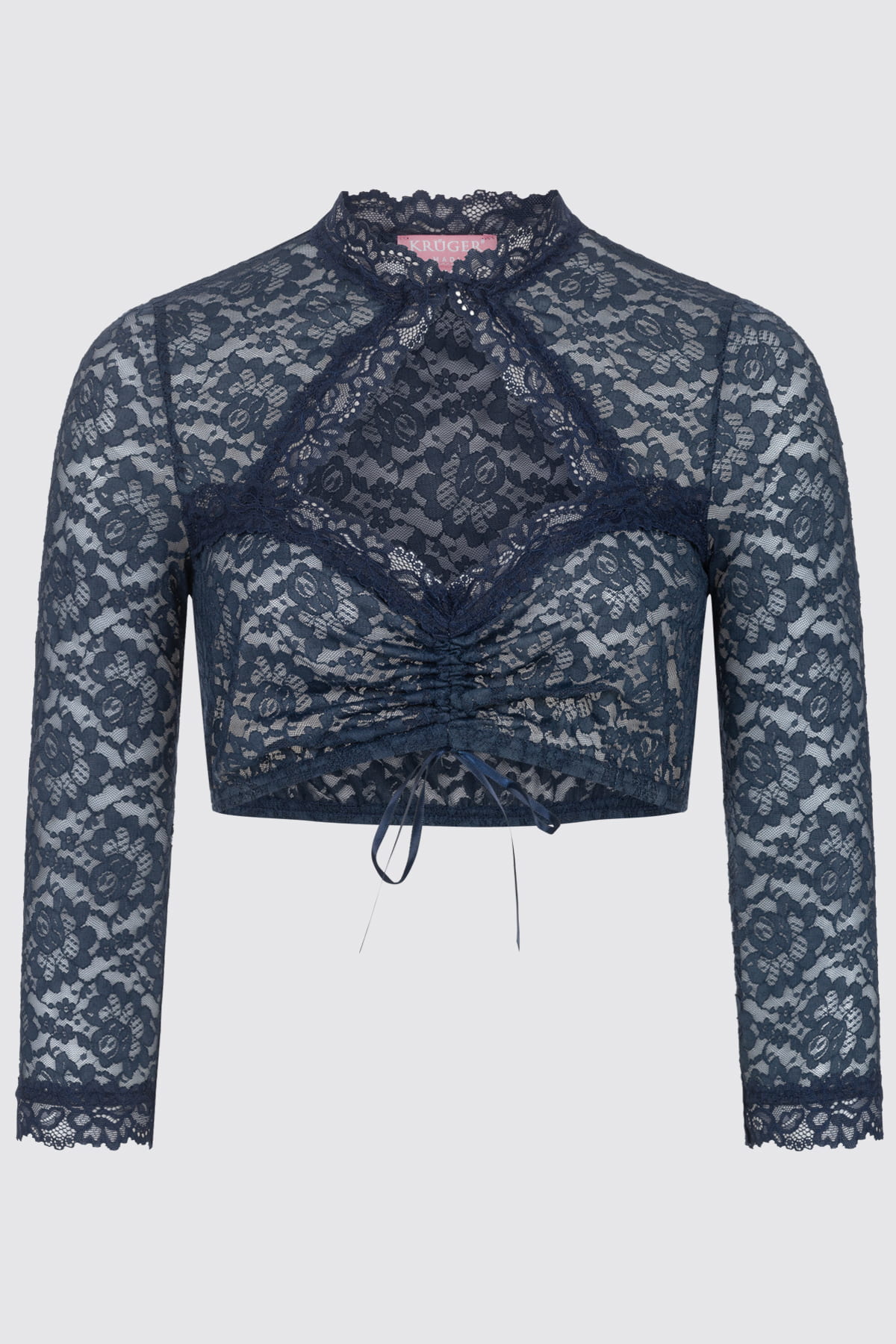 Dirndl Bluse Mit Spitze - Elegante Langarm Trachtenbluse In Blau