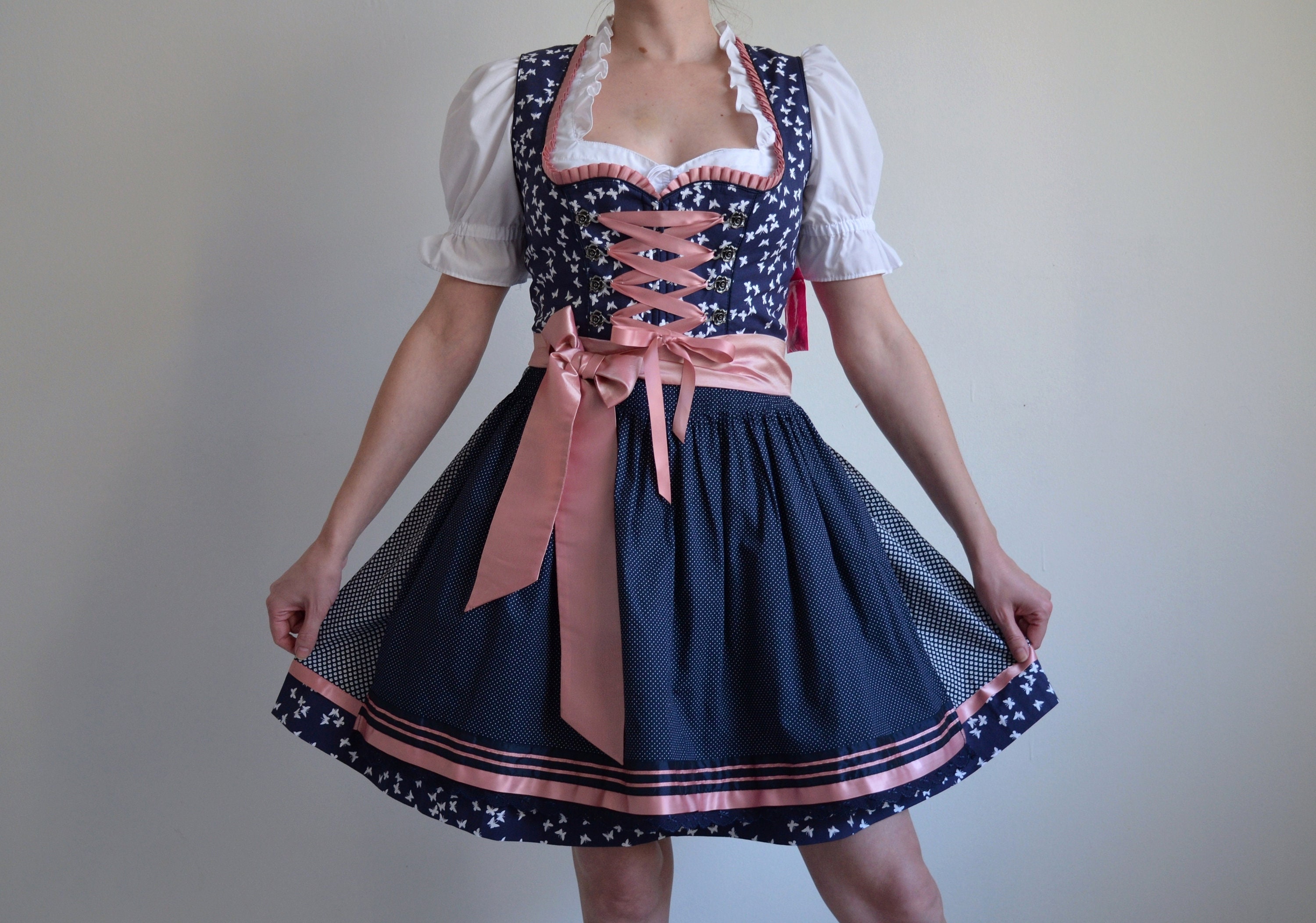 Oktoberfest oder Volksfest - mit diesem traditionellen Dirndl bist du perfekt gekleidet! Das Komplettset besteht aus einem eleganten Samtkleid und passender Schürze. Die Midi-Länge ist klassisch und zeitgemäß zugleich. Mit seitlicher Schnürung für die perfekte Passform und integrierten Taschen - praktisch und stylisch! Aus weichem, dehnbarem Polyester für maximalen Tragekomfort auch bei langen Festen. Ob mit Sandalen oder Absatzschuhen - dieses Dirndl passt zu allem. Authentisches bayerisches Design das garantiert auffällt. Perfekt für alle Festlichkeiten wo traditionelle Tracht gefragt ist!