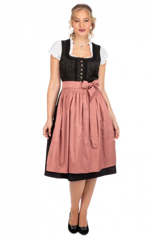 Hochwertige Verarbeitung mit praktischem Reißverschluss vorne für einfaches An- und Ausziehen. Die passende Bluse (wahlweise mit Langarm oder kurz) und die dekorative Schürze komplettieren das Outfit.