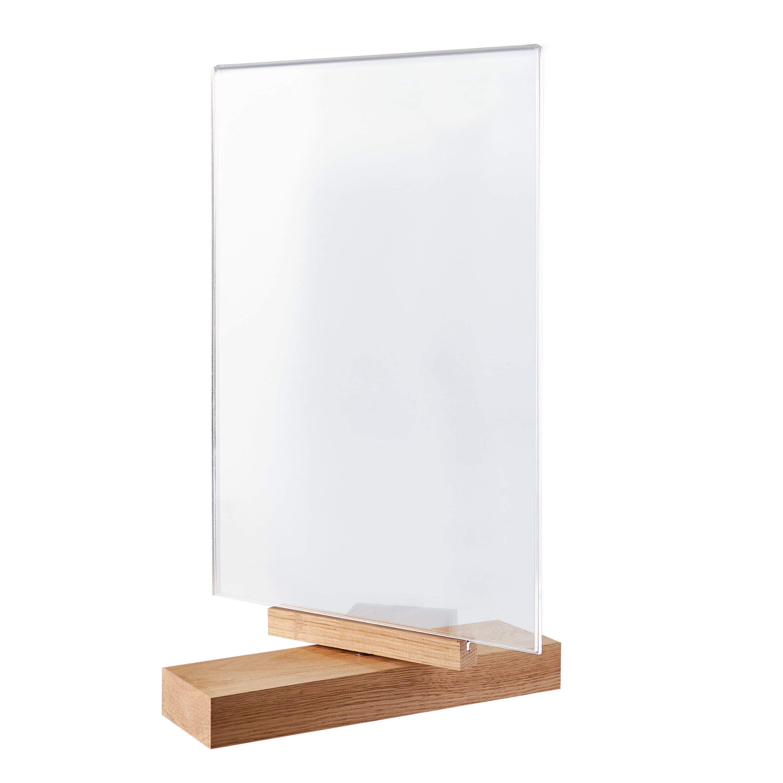 Suchst du einen stylischen und praktischen Aufsteller für deine A4-Dokumente? Der Oriento Tischaufsteller ist genau das Richtige! Aus kristallklarem Acryl gefertigt, sieht er nicht nur super edel aus, sondern ist auch extrem stabil. Das besondere T-förmige Design ermöglicht doppelseitige Präsentation - du kannst also zwei verschiedene A4-Blätter gleichzeitig zeigen! Mit den Maßen 21x29,7 cm passt natürlich jedes Standard-A4-Dokument perfekt. Ob im Büro, Restaurant, Hotel, auf Messen oder Empfängen - dieser Aufsteller ist ein echter Allrounder! Der Aufbau ist denkbar einfach: Schutzfolie abziehen, Dokumente von unten einschieben, Standfuß anbringen - fertig! Durch das geschlossene Design bleibt dein Dokument vor Staub und Feuchtigkeit geschützt. Der Aufsteller ist super leicht und damit perfekt zum Transportieren. Reinigen geht auch easy - einfach mit einem feuchten Tuch abwischen. Perfekt für Speisekarten, Werbematerial, Preistafeln, Informationen oder Fotos. Mit der CE/RoHs-Zertifizierung hast du auch die Sicherheit, dass es sich um ein qualitativ hochwertiges Produkt handelt. Mach deine Präsentationen professioneller und übersichtlicher - mit diesem klasse Aufsteller!