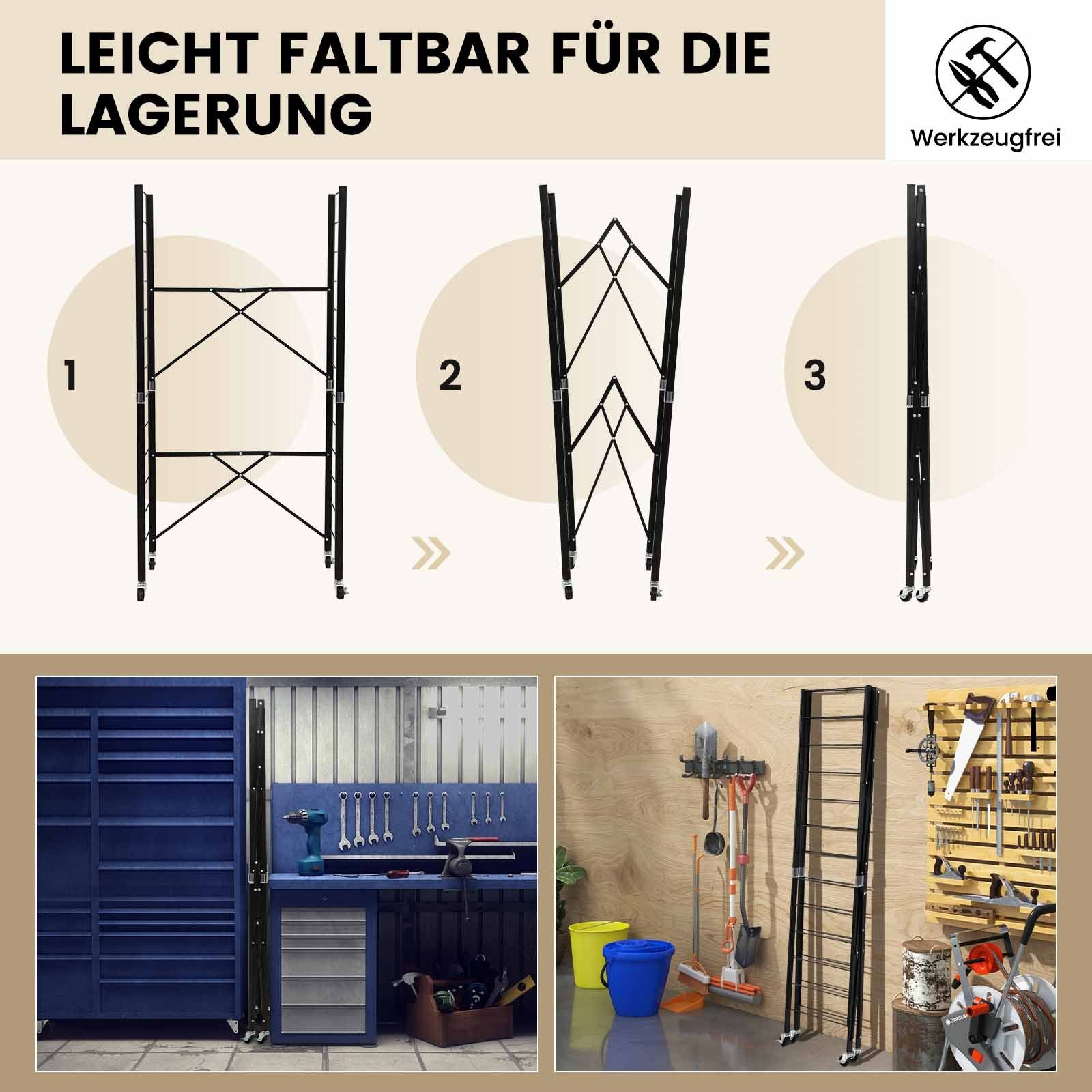 Lhysn Metall-Rollwand-Displayregal 160cm - Werkzeuglagerregal Mit 30 Haken Schwarz