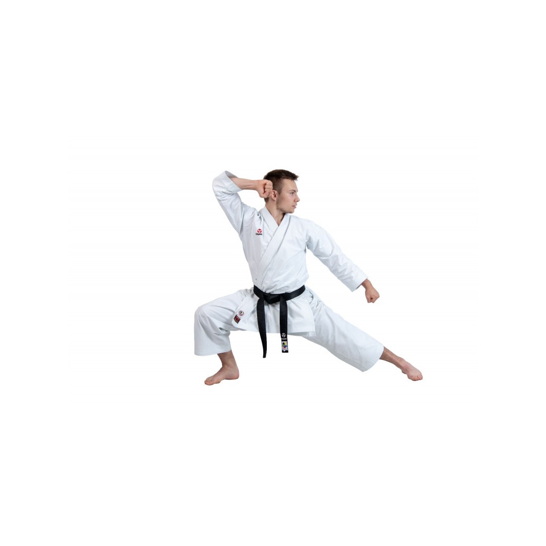 Der perfekte Begleiter für dein Taekwon-Do Training! Dieser 'Taeguk' Dobok von Top Ten sitzt einfach ideal. Mit 65% Baumwolle und 35% Polyester ist der Anzug super atmungsaktiv und gibt dir volle Bewegungsfreiheit. Der klassische V-Ausschnitt und die seitlichen Schlitze an der Jacke sind typisch für WTF-Designs. Die Hose hat einen extra weiten Bund mit Schnürung - passt sich deiner Figur perfekt an. Komplett mit weißem Gürtel geliefert, also sofort startbereit! Die Verarbeitung ist top: Robuste Nähte, die auch intensivem Training standhalten. Ob für Anfänger oder Fortgeschrittene - dieser Dobok macht einfach eine gute Figur. Perfekt für Verein, Wettkampf oder Training zu Hause. Einfach waschen und wieder frisch für die nächste Session. Material: 65% Baumwolle, 35% Polyester. Für alle, die ernsthaft Taekwon-Do betreiben wollen!