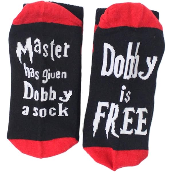 Dobby ist frei! Diese mega-lustigen Harry Potter Socken werden jeden Fan begeistern. Mit dem ikonischen Spruch \\\Master has given Dobby a Sock\\\ - genau wie in den Filmen!\n\nMaterial & Qualität:\n• 80% Baumwolle, 15% Elasthan\n• 4D-Stretch für perfekte Passform\n• Größe 36-47 - passt fast jedem\n• Bis zu 50x maschinenwaschbar\n\nBesondere Features:\n• Linke und rechte Socke haben unterschiedliche Designs\n• Text ist eingestickt, nicht aufgedruckt - verblasst nicht!\n• Doppelt genähter Bund für lange Haltbarkeit\n• Atmungsaktiv und geruchshemmend\n• Temperaturregulierend für alle Jahreszeiten\n\nPerfect für:\n• Harry Potter Movie Nights\n• Fantasy-Conventions\n• Als Geschenk für Potterheads\n• Täglichen Gebrauch\n• Cosplay und Verkleidungen\n\nWarum diese Socken?\n• Hochwertige Verarbeitung\n• Witziges Design für echte Fans\n• Bequem den ganzen Tag zu tragen\n• Passen in fast jeden Schuh\n• Machen garantiert gute Laune\n\nDie Socken sind nicht nur super weich, sondern halten auch was aus. Der Stretch-Anteil sorgt dafür, dass sie sich jeder Fußform anpassen, ohne zu drücken oder einzuschnüren.\n\nPflege:\n• Einfach bei 40°C in der Maschine waschen\n• Farbecht und formstabil\n• Trocknen ohne Trockner empfohlen\n\nOb für dich selbst oder als Geschenk für andere Harry Potter Fans - diese Socken sind ein absolutes Must-Have! Einfach anziehen und sich fühlen wie in Hogwarts. \\\Dobby is free!\\\