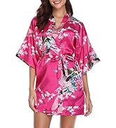 Dolamen Kinder Morgenmantel Mädchen - Satin Kimono Bademantel Mit Pfau Blume Muster