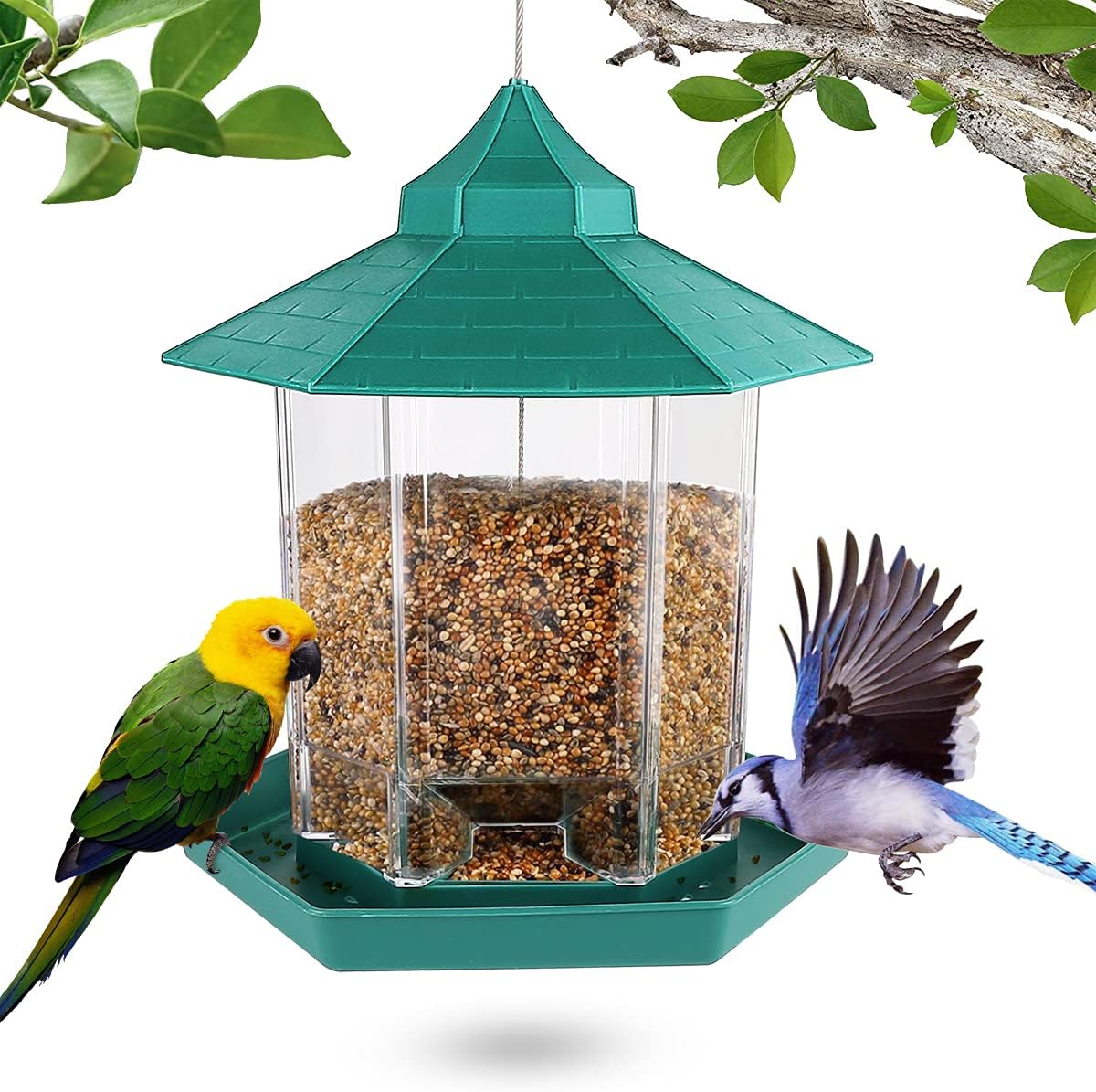 Hallo Vogelfreunde! Dieser praktische Futternapf ist genau das, was deine gefiederten Mitbewohner brauchen. Mit zwei separaten Schüsseln kannst du Futter und Wasser gleichzeitig anbieten - super hygienisch und übersichtlich. Die coole Sitzstange aus Holz gibt Vögeln einen bequemen Platz zum Fressen und Ausruhen. Aus stabilem Acryl gefertigt, ist der Napf leicht zu reinigen und rostet natürlich nicht. Durchsichtig, sodass du immer siehst, was noch drin ist. Perfekt für Wellensittiche, Kanarienvögel, Nymphensittiche und andere kleine Piepmätze. Einfach mit den mitgelieferten Muttern am Käfig befestigen - hält sicher, auch wenn dein Vogel mal wilder drauf ist. Maße: Halterung 12,3x10x6,7cm, Futterschüssel Ø5,5cm, Sitzstange 10,5cm. Mach deinen Vögeln eine Freude!
