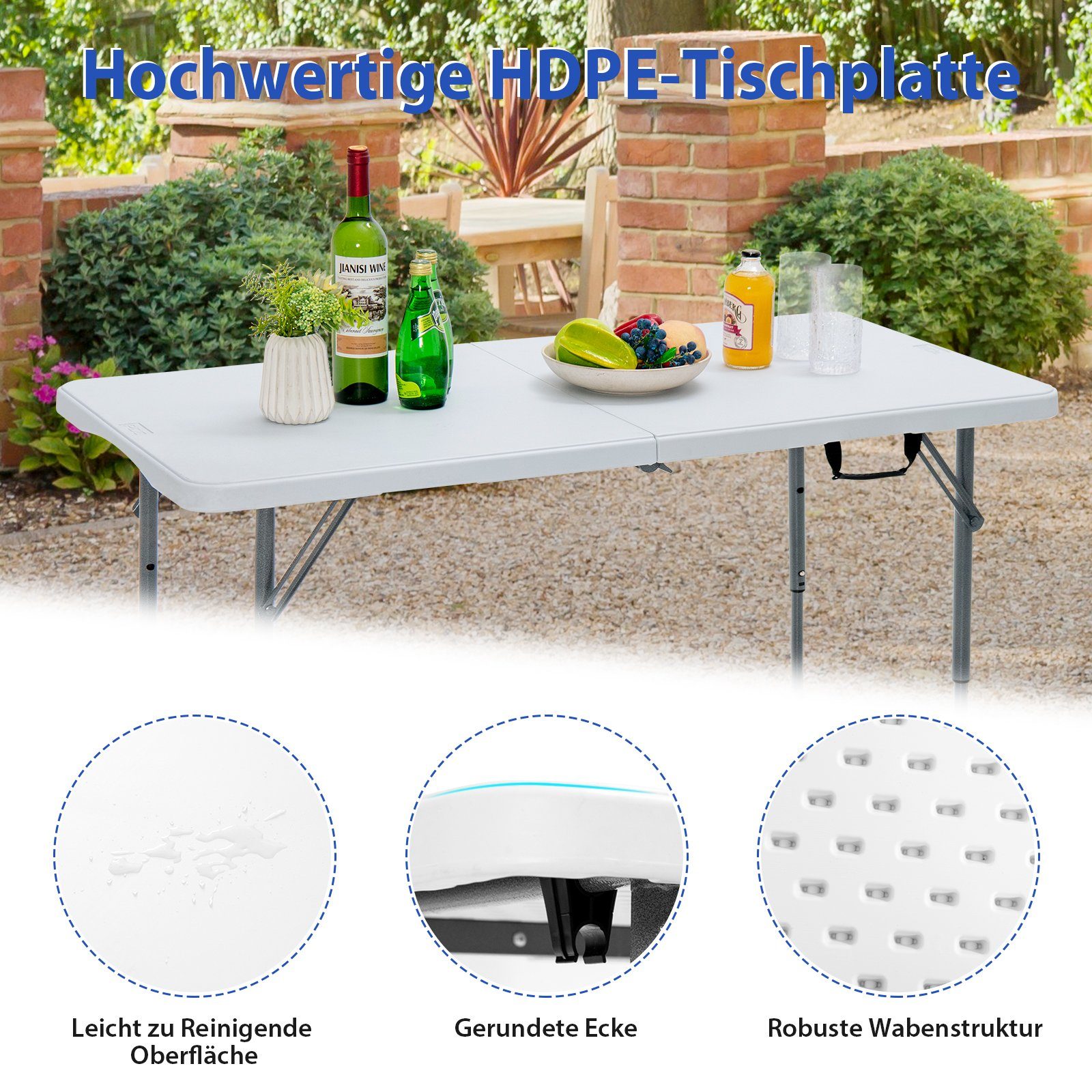 Boah, dieser Campingtisch von COSTWAY ist einfach genial! Mit zwei großen Becken (je 9cm tief) hast du Platz für Eis, Getränke oder Snacks! Die Maße von 150x60cm bieten reichlich Stellfläche! Aus wetterfestem HDPE-Material ist er super robust und hält bis zu 100kg aus! Der stabile H-förmige Metallrahmen gibt sicheren Stand! Der abnehmbare Bezug verdeckt den Ablaufschlauch und ist waschbar! Klappbar und mit Tragegurt - super praktisch für unterwegs! Perfekt für Gartenpartys, Picknicks, Camping oder Hochzeiten! Sofort einsatzbereit - keine Montage nötig! Also, wenn du einen vielseitigen und praktischen Outdoor-Tisch suchst - dieser hier ist perfekt! Einfach auspacken und deine Party kann beginnen!
