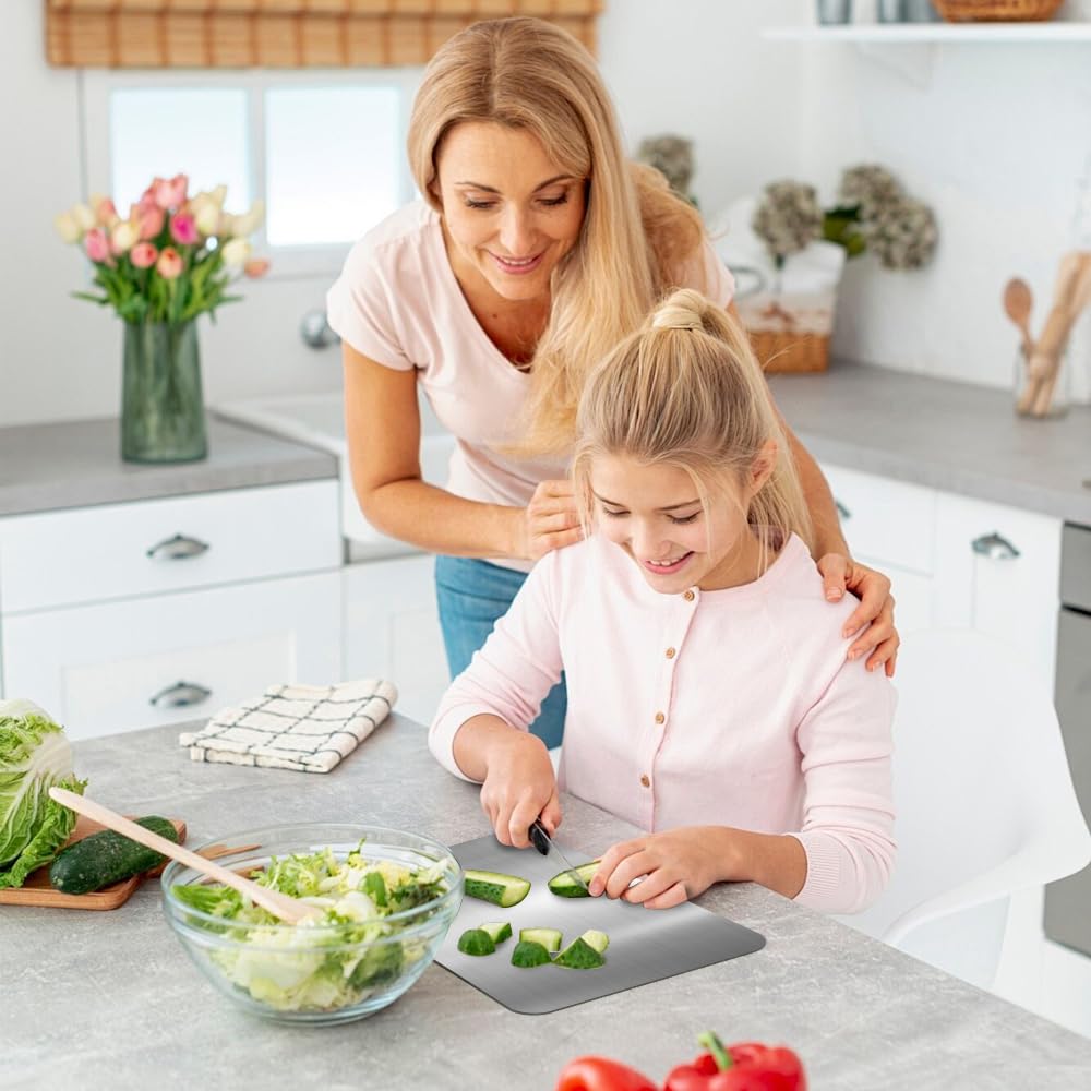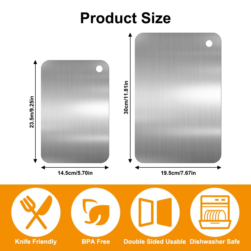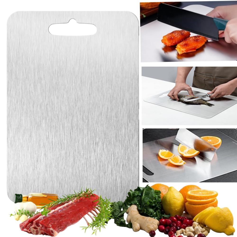 2er Set Schneidebretter Aus Titan-Edelstahl - Doppelseitig Mit Wabenstruktur & Glatter Seite - Küchenhelfer Für Fleisch, Gemüse & Mehr