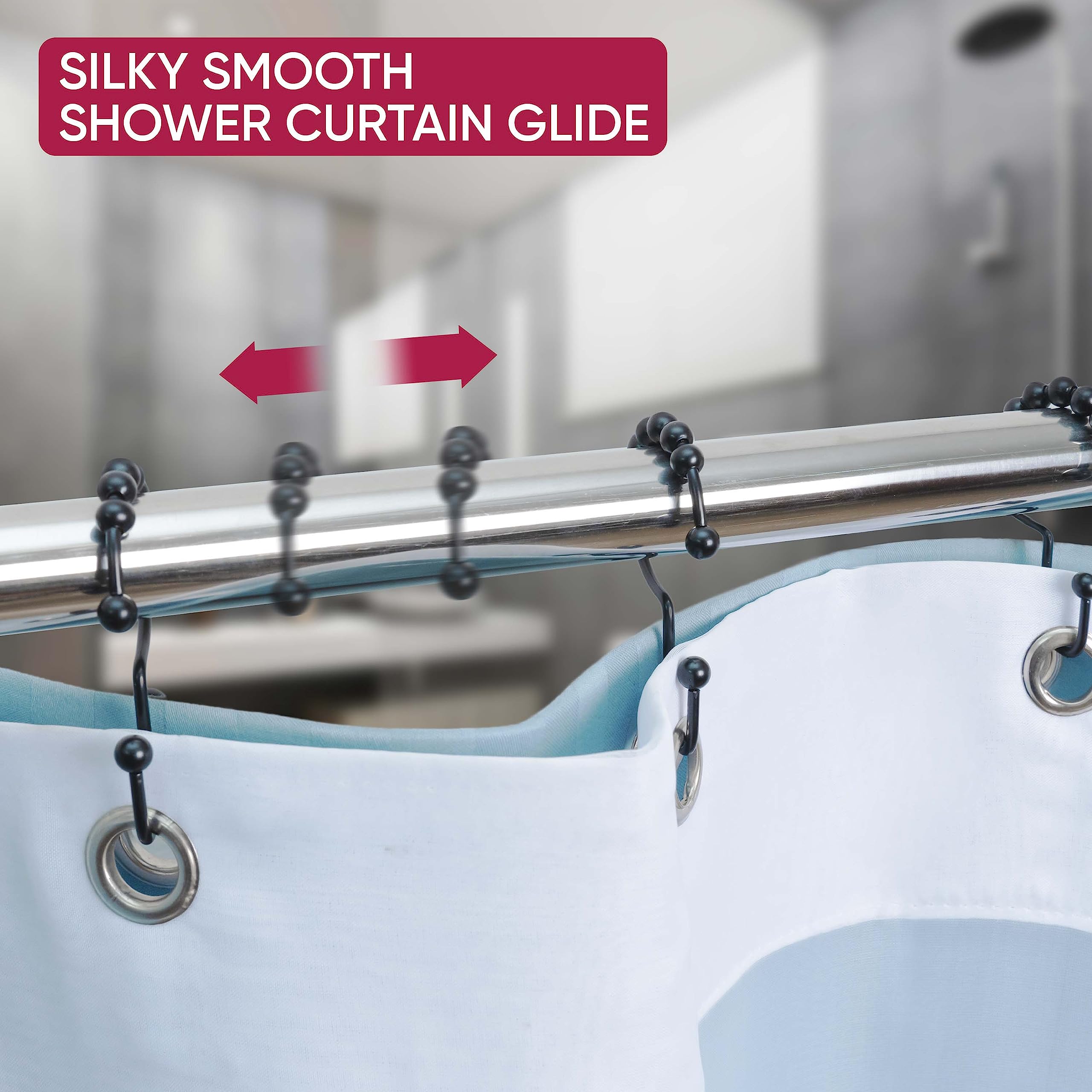 12x Doppelseitige Duschvorhanghaken - Metall Mit Rollkugeln