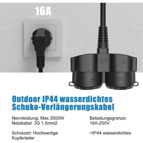 Doppelstecker Mit 2 Schuko Steckdosen - IP44 Wasserdicht Für Innen & Außen