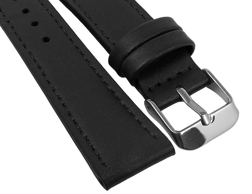 Suchst du ein neues Armband für deine Lieblingsuhr? Dieses schicke Lederarmband in Schwarz ist genau das Richtige! Aus glattem Leder gefertigt, sieht es einfach zeitlos aus. Die silberfarbene Dornschließe macht nicht nur was her, sondern hält auch sicher und zuverlässig. Die schwarze Ziernaht gibt dem Armband einen extra stylischen Look. Perfekt für Business, Freizeit oder besondere Anlässe - dieses Armband passt einfach immer. Einfach zu wechseln und super bequem zu tragen. Verleihe deiner Uhr ganz einfach ein neues Aussehen, ohne gleich eine neue kaufen zu müssen. Ob zum Anzug oder zur Jeans - dieses Lederarmband macht jede Uhr zum Hingucker!