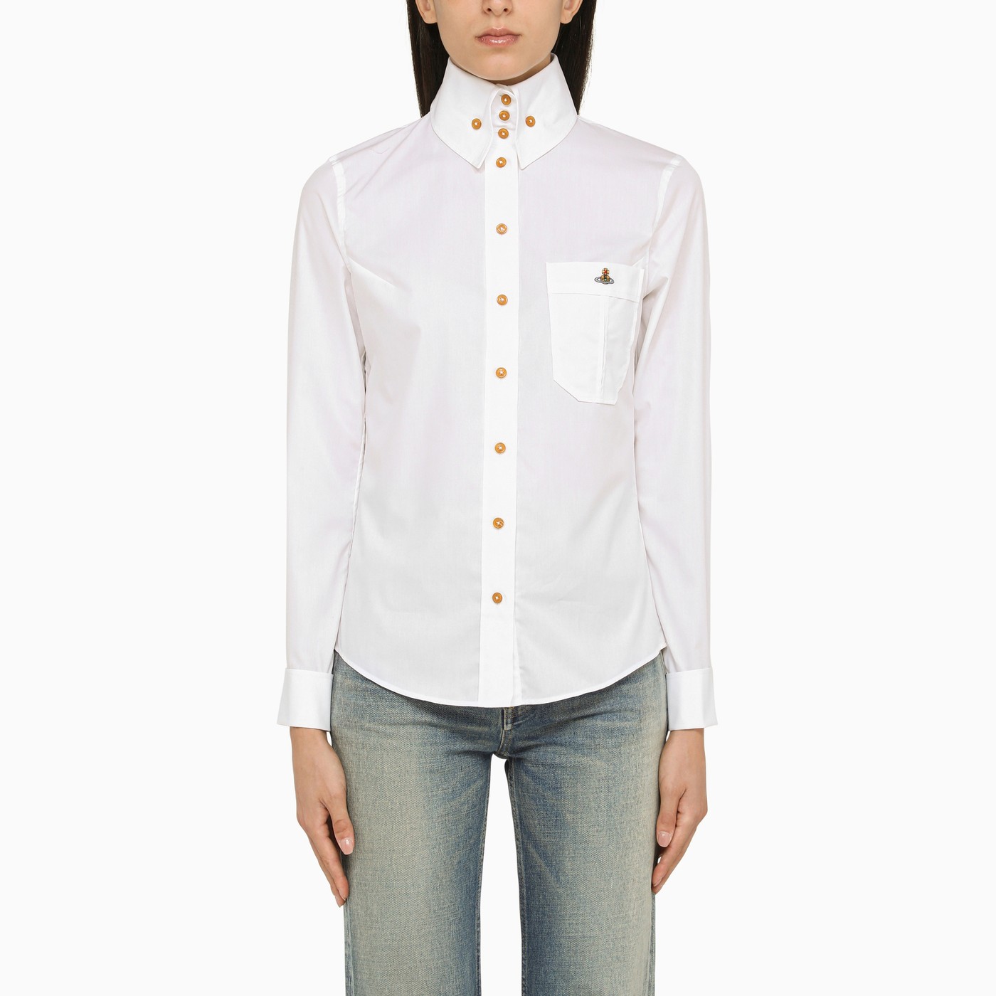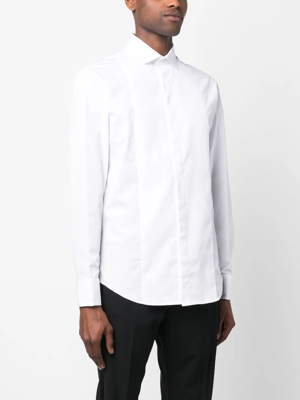 Weißes Button-Down Herrenhemd - Patchwork Design Langarm Personalisierbar