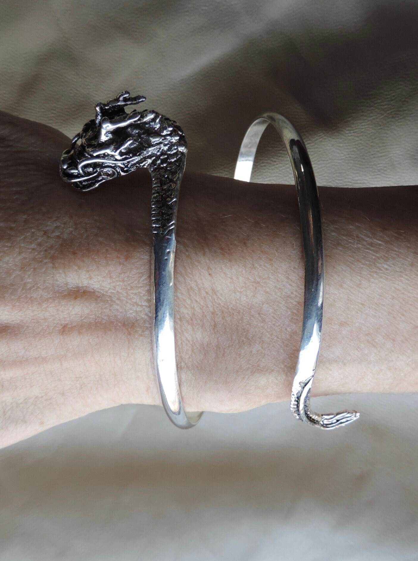 Wow, diese Drachen-Armbänder sind ja der absolute Hingucker! Im 4er Set bekommst du gleich vier verschiedene Farben: Rot, Blau, Grün und Schwarz - da ist für jeden Style was dabei. Aus hochwertigem Metall gefertigt, sind sie robust und verformen sich nicht so leicht. Das geflochtene Design mit den detaillierten Drachen-Flügeln und Schuppen sieht einfach mega aus! Die faszinierenden Drachen-Augen geben jedem Armband diesen besonderen Look. Mit ca. 9x5x4cm und verstellbarer Länge passt es an jedes Handgelenk. Super leicht mit nur 8g Gewicht - kaum spürbar, aber ein echter Blickfang! Trag es als Symbol für Mut, Stärke und Freiheit - lass deinen Geist fliegen wie ein Drache! Perfekt für besondere Anlässe wie Hochzeiten, Abschlussfeiern oder einfach als tägliches Accessoire. Das retro Design ist zeitlos schön und passt zu fast jedem Outfit. Einfach umlegen und bewundern lassen - diese Armbänder werden garantiert Komplimente regnen! Für alle, die es mystisch und stylisch mögen!