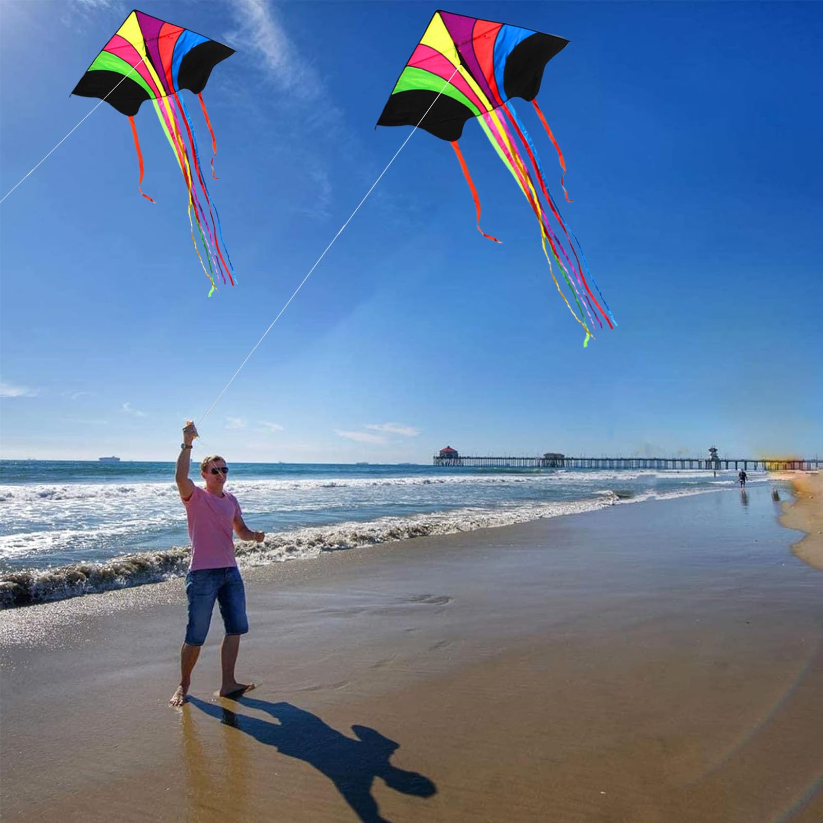 2x Kinder-Drachen Set - Delta Drachen 140 Cm Mit 100m Schnur & Bunten Schwänzen