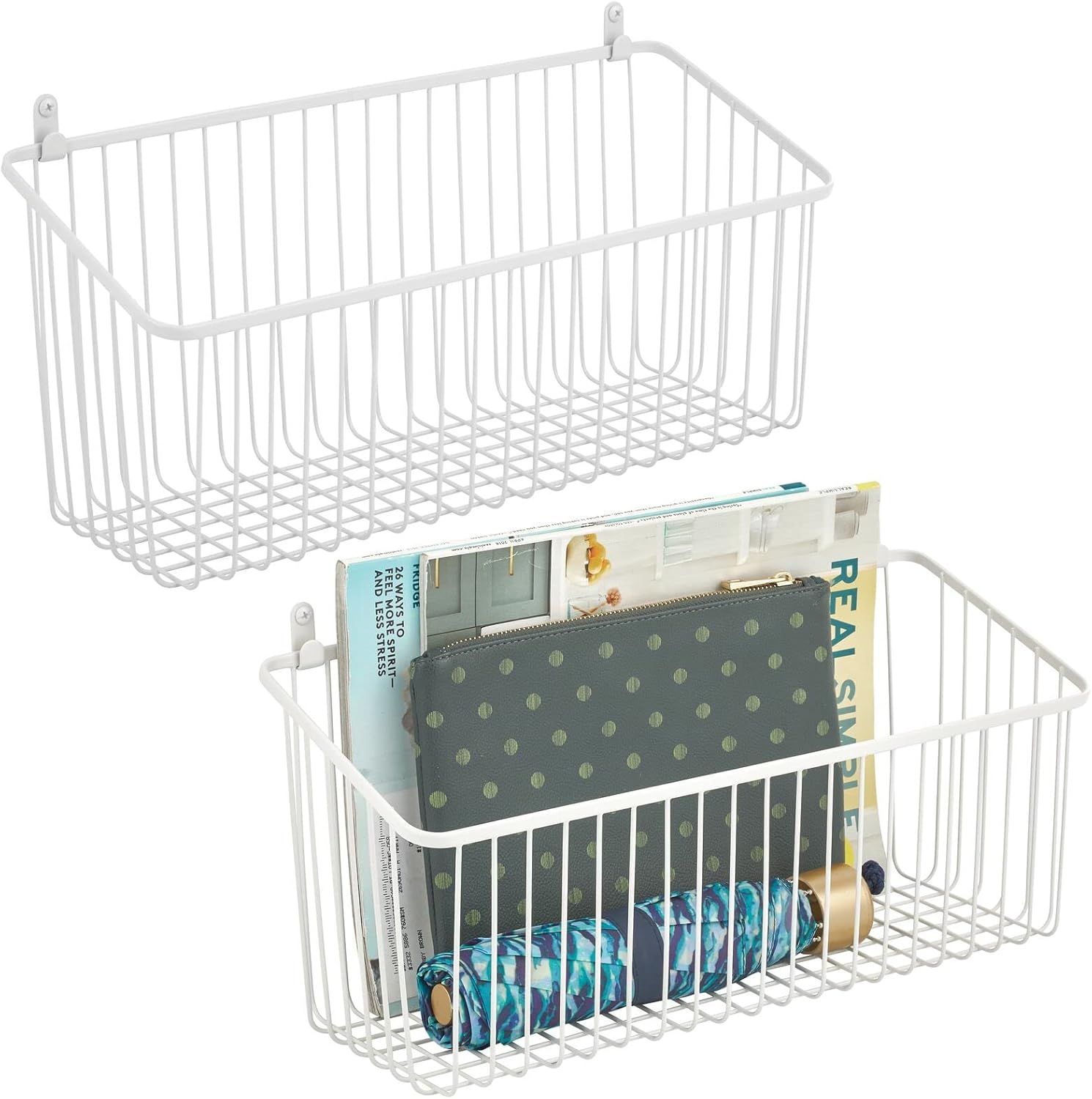 Endlich Ordnung in Küche und Bad! Diese 2 praktischen Drahtkörbe aus Metall sind super für die Wandmontage. Maße: 23x10,3x7,5 cm - genau richtig für Seife, Schwämme, Gewürze oder Kosmetik. Komplett nagelfrei - beschädigt deine Wände nicht! Aus robustem Eisen, wasserbeständig und langlebig. Die hohe Tragkraft hält auch schwerere Gegenstände. Perfekt für Bad, Küche, Hotel oder Wohnung. Einfach anbringen und sofort mehr Stauraum schaffen. Sieht nicht nur gut aus, sondern ist auch mega praktisch. Nie wieder Chaos auf den Arbeitsflächen - alles hat seinen Platz!