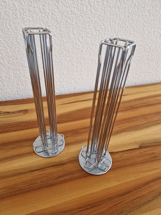 Bring Ordnung in deine Kaffeeecke mit diesem stylischen Nespresso Kapselständer von eluno! Der praktische Halter bietet Platz für ganze 40 Kapseln - das entspricht genau 4 Original-Kartons. Die vier gebogenen Türme sehen nicht nur super aus, sondern sind auch um 360 Grad drehbar. So hast du immer den perfekten Überblick über deine Kaffeesorten und kannst ganz einfach von unten die gewünschte Kapsel entnehmen. Aus robustem, schwarz pulverbeschichtetem Metall - stabil und langlebig. Mit Schutzpad an der Unterseite, damit deine Arbeitsplatte keine Kratzer abbekommt. Maße: 12,5 x 37,5 x 12,5 cm - kompakt aber geräumig. Endlich Schluss mit herumliegenden Kapseln oder unordentlichen Kartons! Sieht nicht nur gut aus, sondern macht die Kaffeezubereitung auch viel entspannter. Ein Must-Have für jeden Nespresso-Liebhaber, der Wert auf Stil und Ordnung legt!
