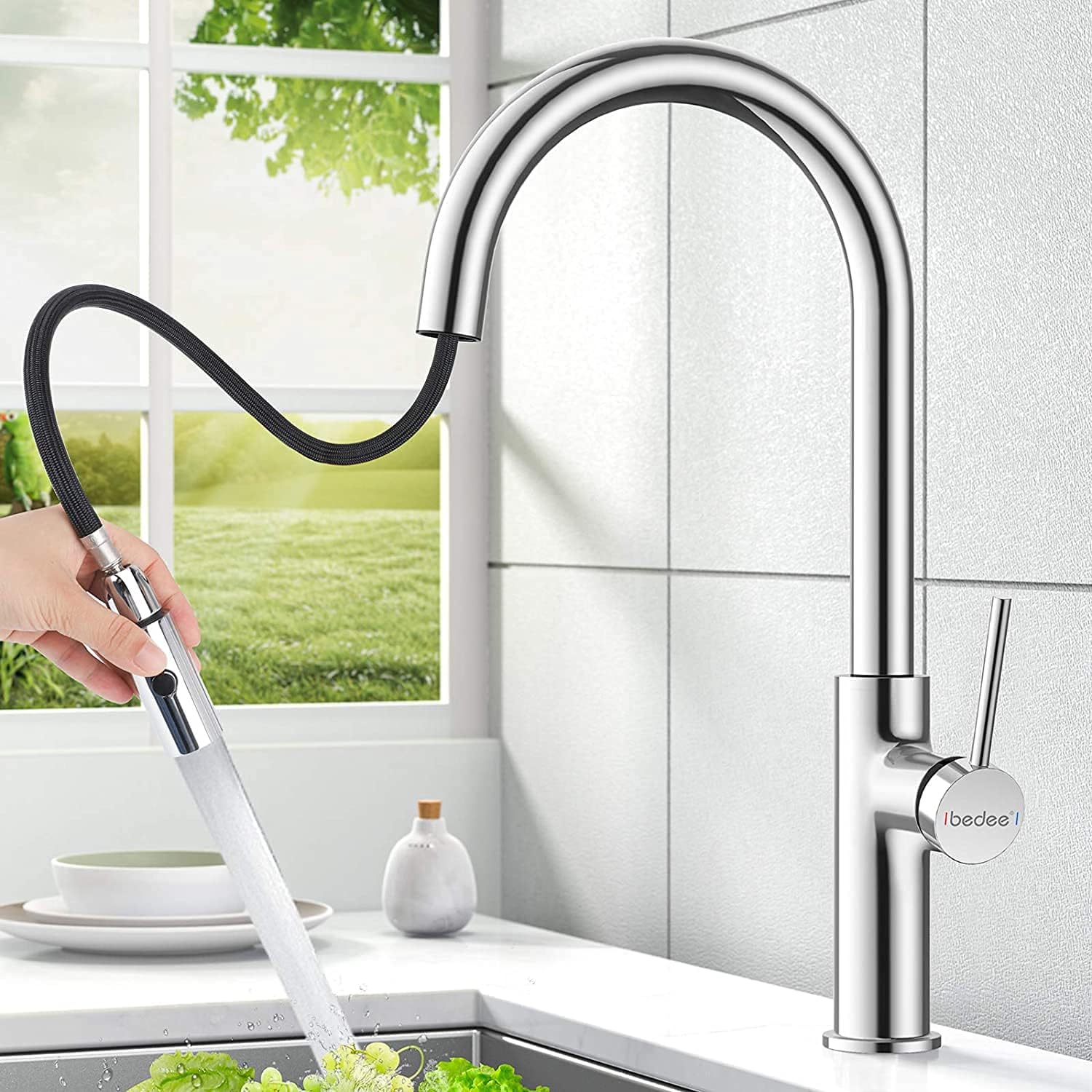 Wow, dieser Küchenwasserhahn ist ja mal richtig praktisch! Mit ausziehbarer Brause, die sich um volle 360° drehen lässt - so erreicht ihr wirklich jede Ecke eurer Spüle. Einfach rausziehen, drehen und schon wird auch der hinterste Winkel blitzblank.