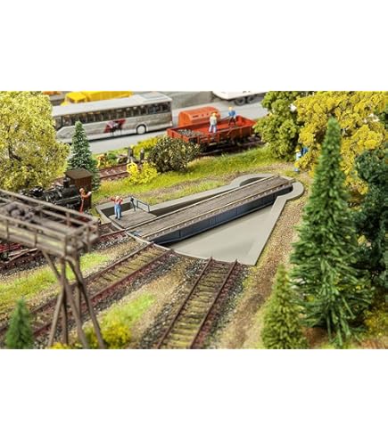 Alter, diese Fleischmann Drehscheibe ist ja mal richtig professionell! Für die H0 Spur 1:87 mit elektrischem Antrieb und einzelnen Gleisabgängen, die du elektrisch zuschalten kannst. Die Drehbühne ist stolze 310 mm lang und in super detailgetreuer Gruben-Bauweise gemacht. Im Lieferumfang sind schon 6 Auffahrgleise und 4 Blindstutzen dabei - mehr geht immer! Du kannst die Gleise im Winkel von 7,5° oder 15° an- und umstecken, wie es dir passt. Und wenn das nicht reicht: Mit dem Ergänzungs-Set (Best.-Nr. 21 55 60-00) kannst du auf bis zu 48 Gleisanschlüsse erweitern! Echt krass, oder? Die Verarbeitung ist typisch Fleischmann - absolut vorbildlich mit allen wichtigen Details. Ob für deinen Heimbahnhof oder eine große Anlage - damit machst du auf jeden Fall was her! EAN: 4005575061520