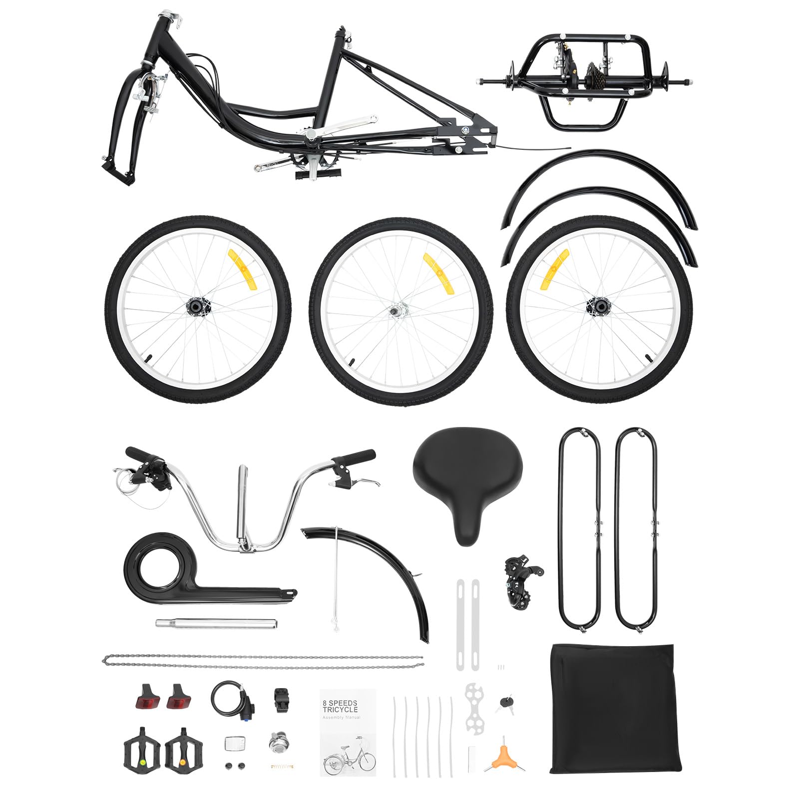 Endlich stabil und sicher unterwegs! Dieses Dreirad für Erwachsene gibt dir die Freiheit, die du suchst - ob für Einkäufe, Spaziergänge oder einfach nur zum Genießen. Mit 20 Zoll Rädern und 8 Gängen meisterst du jeden Hügel, die V-Brake Bremsen sorgen für Sicherheit. Der große Einkaufskorb hinten trägt bis zu 20kg - perfekt für Großeinkäufe oder deine Tasche. Und das beste: Es ist klappbar! So passt es auch in kleine Wohnungen oder Auto-Kofferräume. Verstellbarer Sitz (73,5-92cm) und Lenker (96,5-104,5cm) passen sich deiner Größe an (1,55-1,70m). Aus robustem Stahl mit Aluminium-Felgen - hält bis 110kg. Einfach aufbauen (zu zweit geht's leichter) und losfahren - zur Arbeit, zum Einkaufen oder für entspannte Ausflüge!