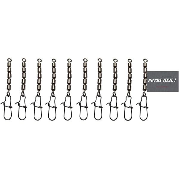 Perfektes Angelzubehör von KEQAR! 20 robuste Dreizack-Wirbelhaken im Set - für alle Angelbedingungen. Aus Kupfer mit gelöteten Ringen - extrem stabil und reißfest. Mit 3 rostfreien Kugellagern - drehen sich super smooth und verhindern Schnurverdrehungen. Polierte Oberfläche schont die Angelschnur. Anti-Korrosions-Beschichtung - für Süß- und Salzwasser geeignet. Kompakte Größe aber maximale Stärke - hält auch großen Fischen stand. Ideal für Forellen, aber auch für andere Fischarten. Einfach Köder und Schnur verbinden - sicher und zuverlässig. Auch für andere Bastelprojekte verwendbar. Macht jedes Angel-Erlebnis erfolgreicher! Einfach ins Tackle-Box und immer griffbereit haben. Qualität die sich beim Angeln bezahlt macht!