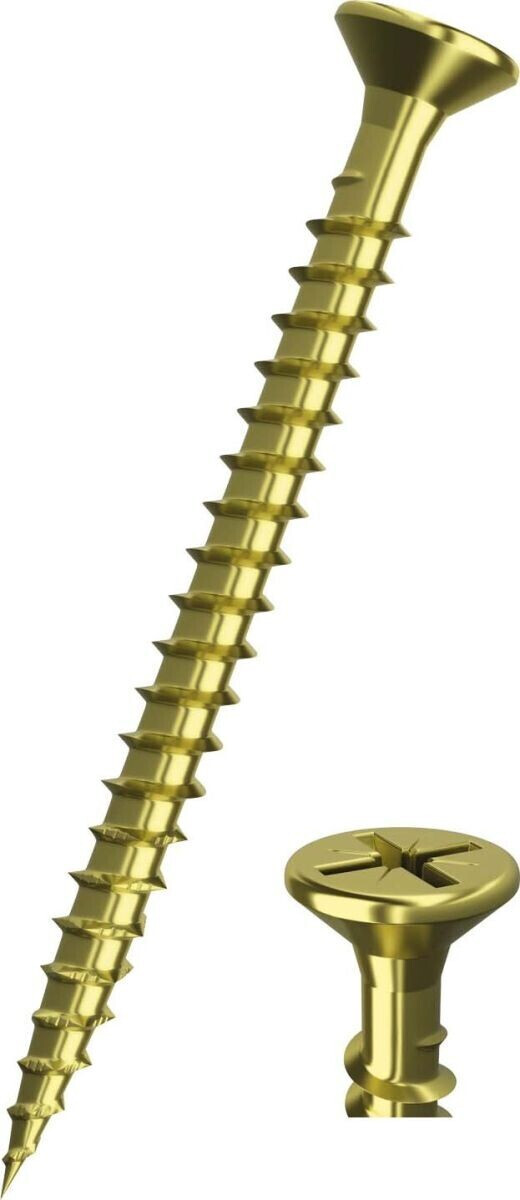Für alle Heimwerker: Diese Dresselhaus Universalschrauben sind echte Allrounder! Die JD-79 Schrauben mit Senkkopf und Fräsrippen passen für Hartholz, Spanplatten, Kunststoffe und mehr. Mit I-Stern-Antrieb (T30) und Teilgewinde für besseren Halt. Galvanisch verzinkt und gelb chromatiert - rostfrei und langlebig. Besondere Gleitbeschichtung für niedrige Einschraubmomente. Maße: 6mm Durchmesser, 120mm Länge. Im 100er-Set - da hast du lange was davon. Perfekt für Möbelbau, Regale oder andere Holzprojekte. Qualität, die man kennt und vertraut!